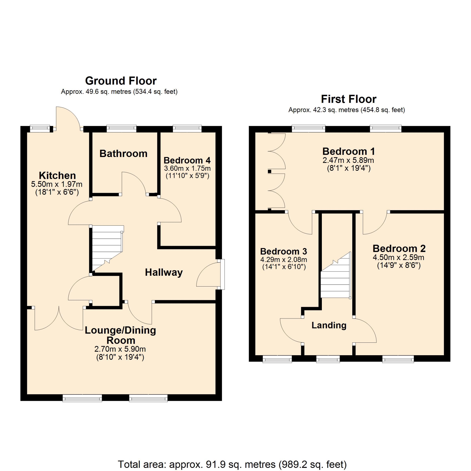 BEDROOM TWO 4.50m x 2.59m (14'9" x 8'5")