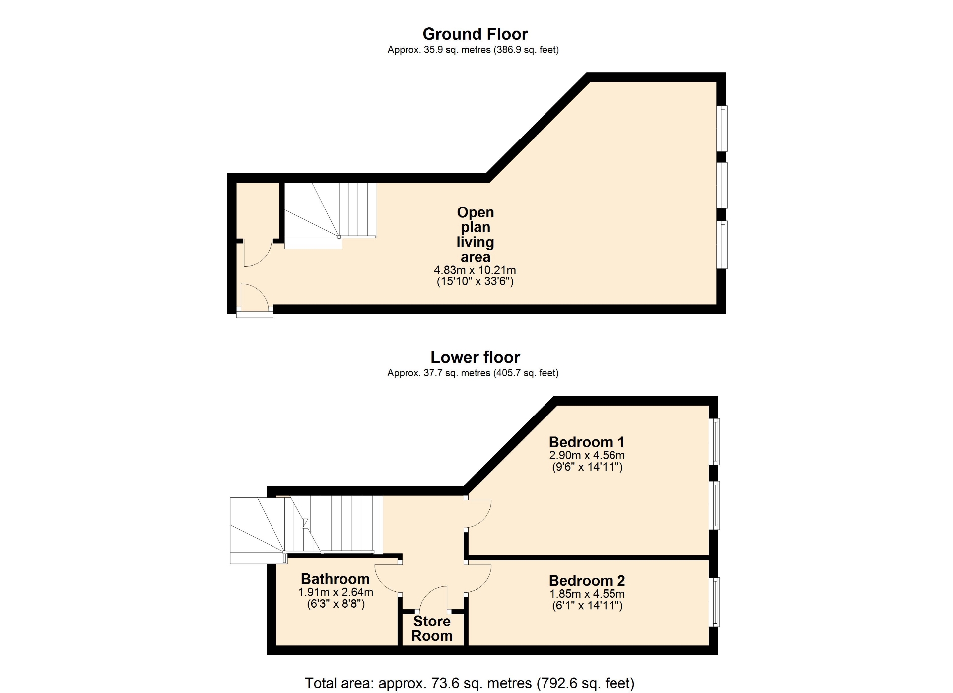 - Two Lower Floor Bedrooms