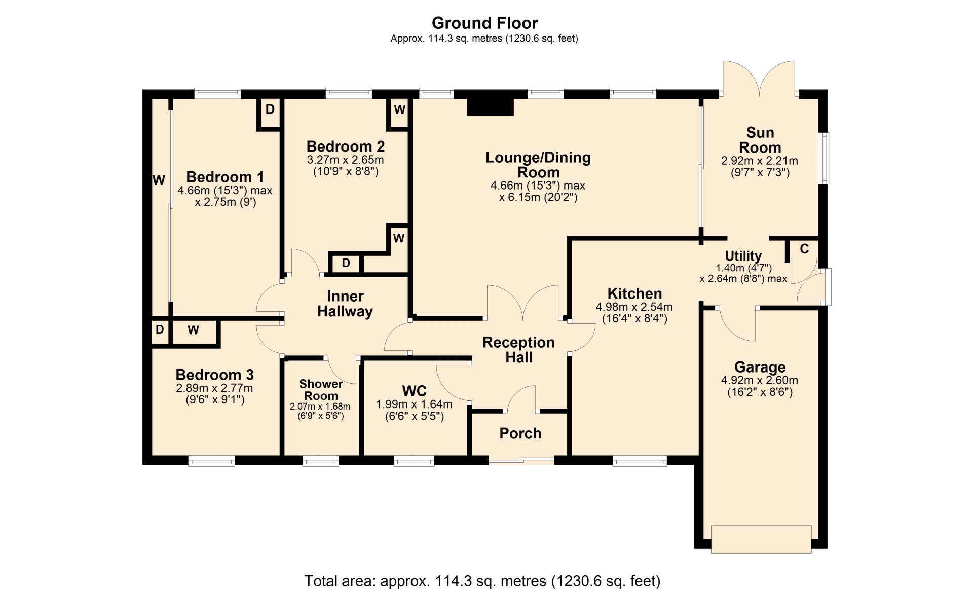 SUN ROOM 2.92m x 2.21m (9'7" x 7'3")