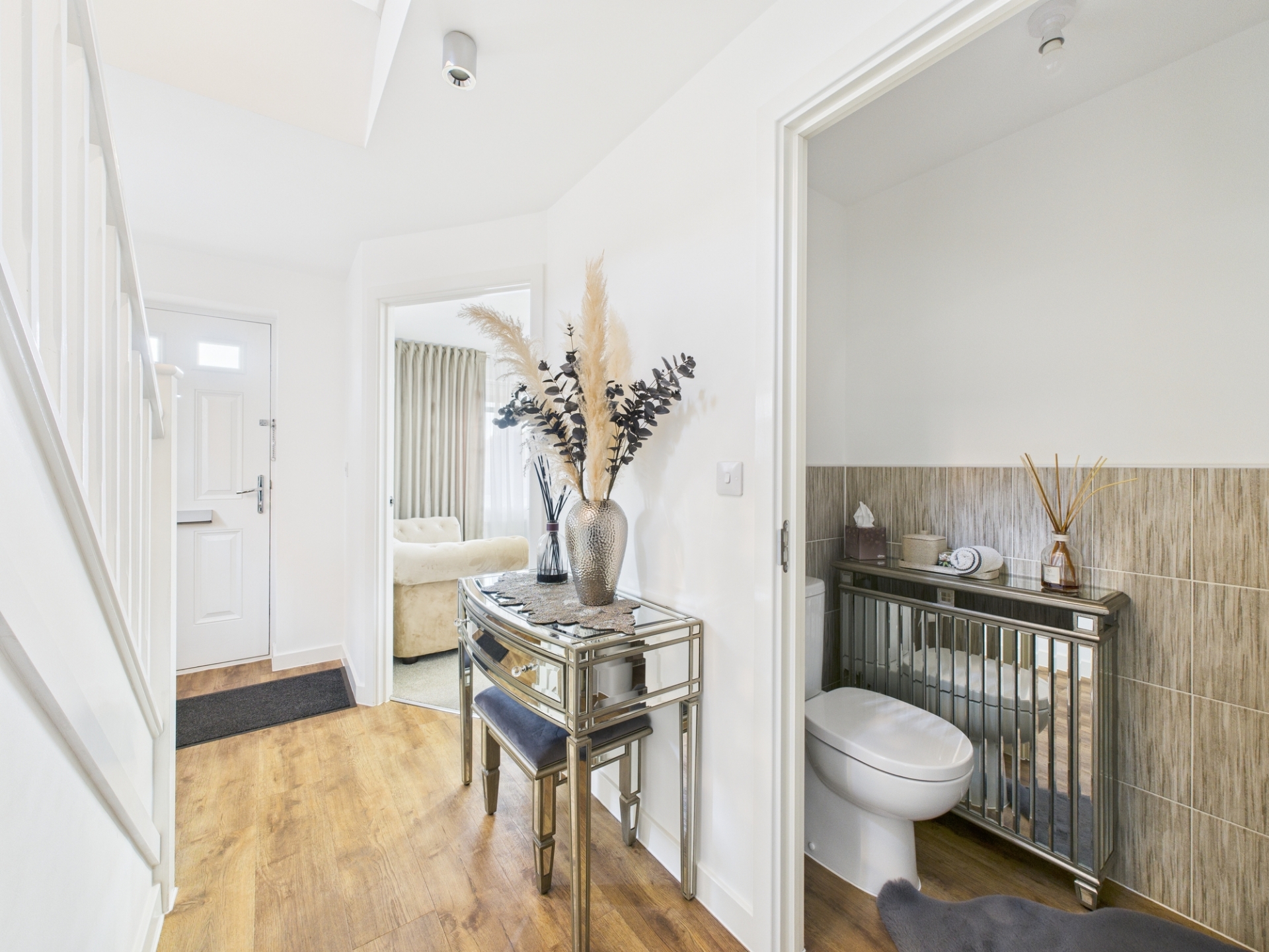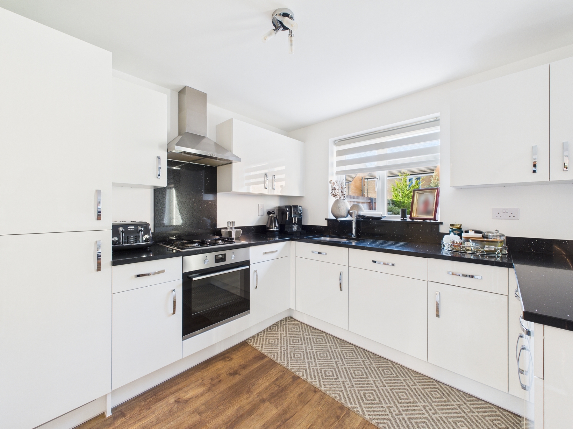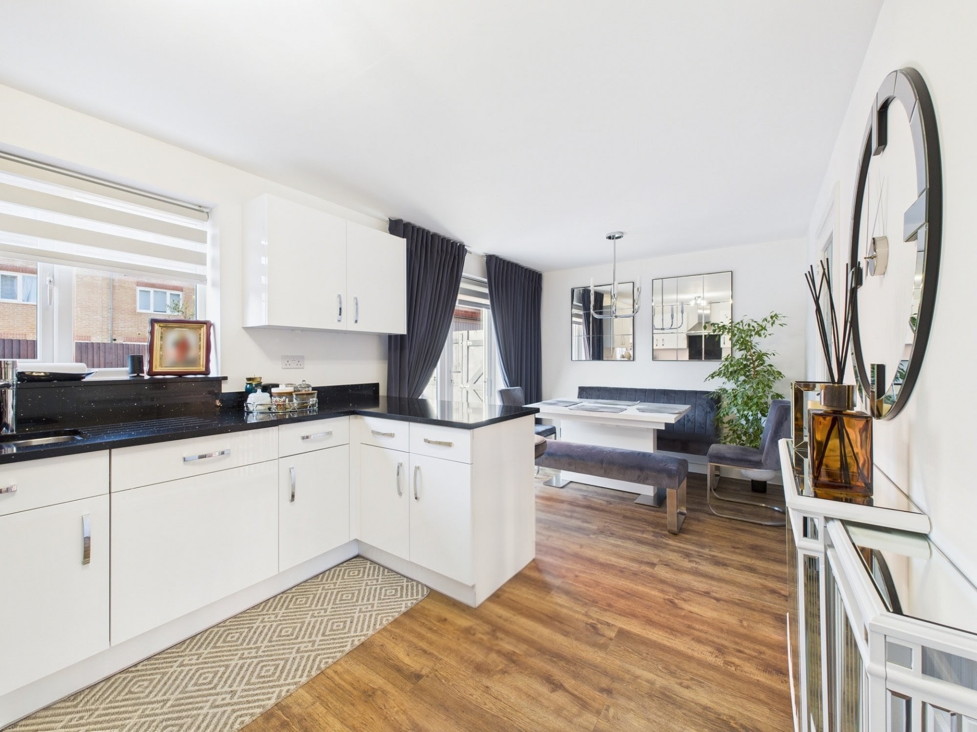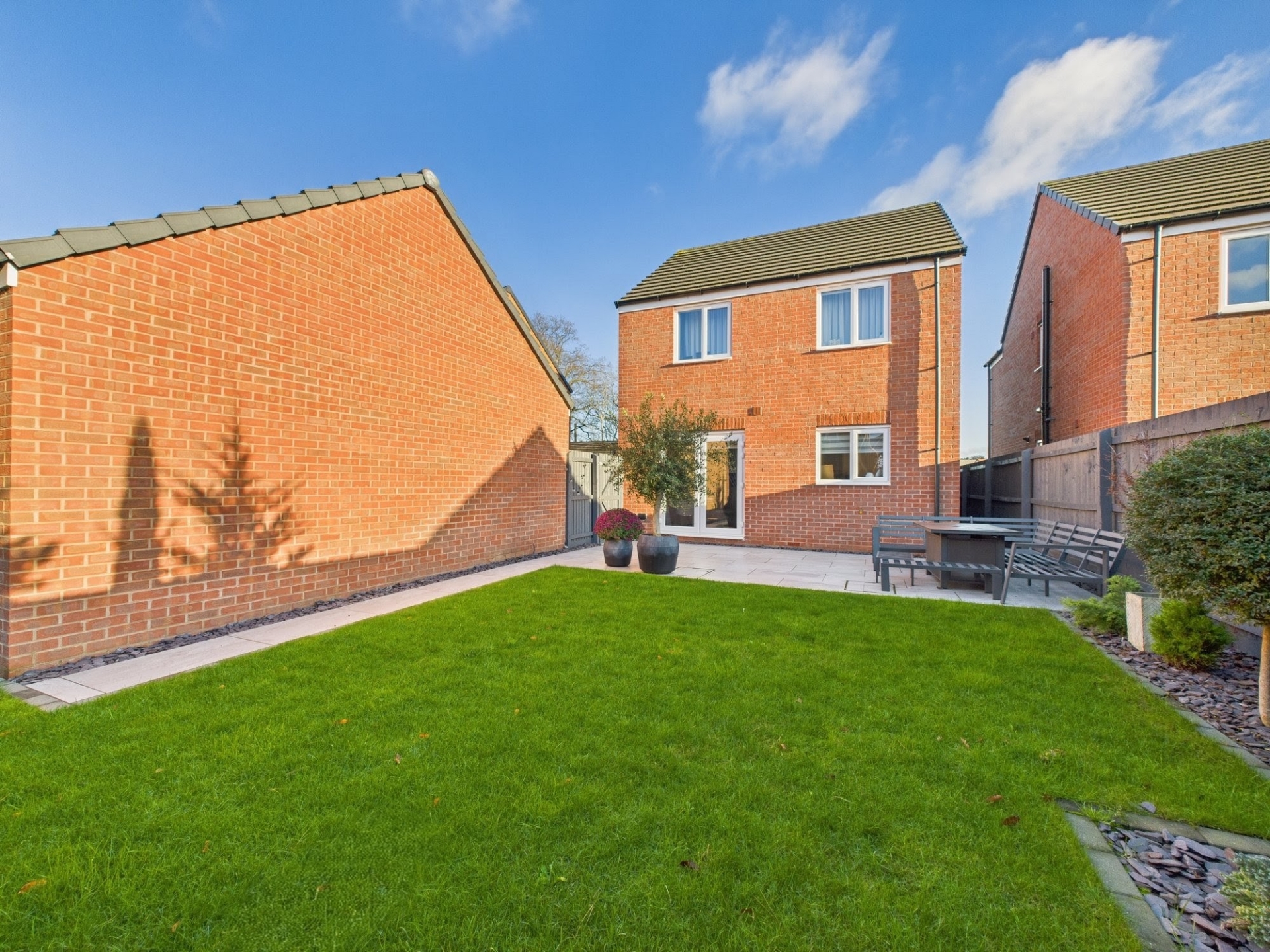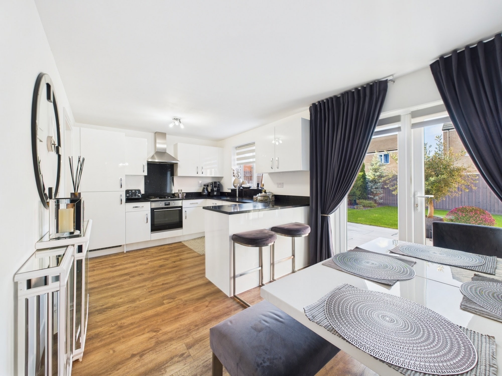A beautifully presented three-bedroom detached property constructed in 2020 by Persimmons homes, benefitting from a landscaped rear garden and situated within the highly sought after location of Scholars Green. The ground floor accommodation comprises entrance hall, with understairs storage, leading to the lounge kitchen / dining room with utility area and cloakroom. The first floor comprises of a generous landing area with built in storage, three well-proportioned bedrooms with an en-suite to master bedroom and family bathroom. To the rear is a landscaped garden, with porcelain slabs, fully enclosed by a timber fence with gated side access. To the front of the property is a driveway for two vehicles, a single garage, a porcelain path leading to the front door, and well-kept shrubbery. For more details or to arrange a viewing, please call Jackson Grundy on 01604 722197.