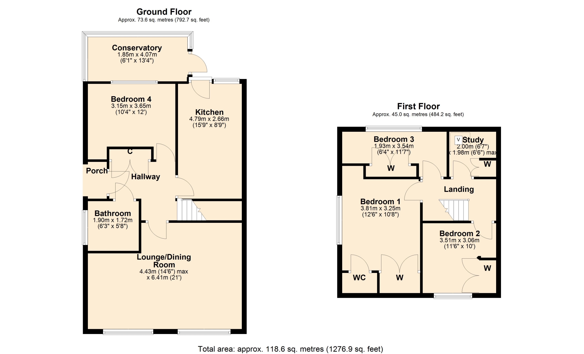 BEDROOM ONE 3.81m x 3.25m (12'6" x 10'8")