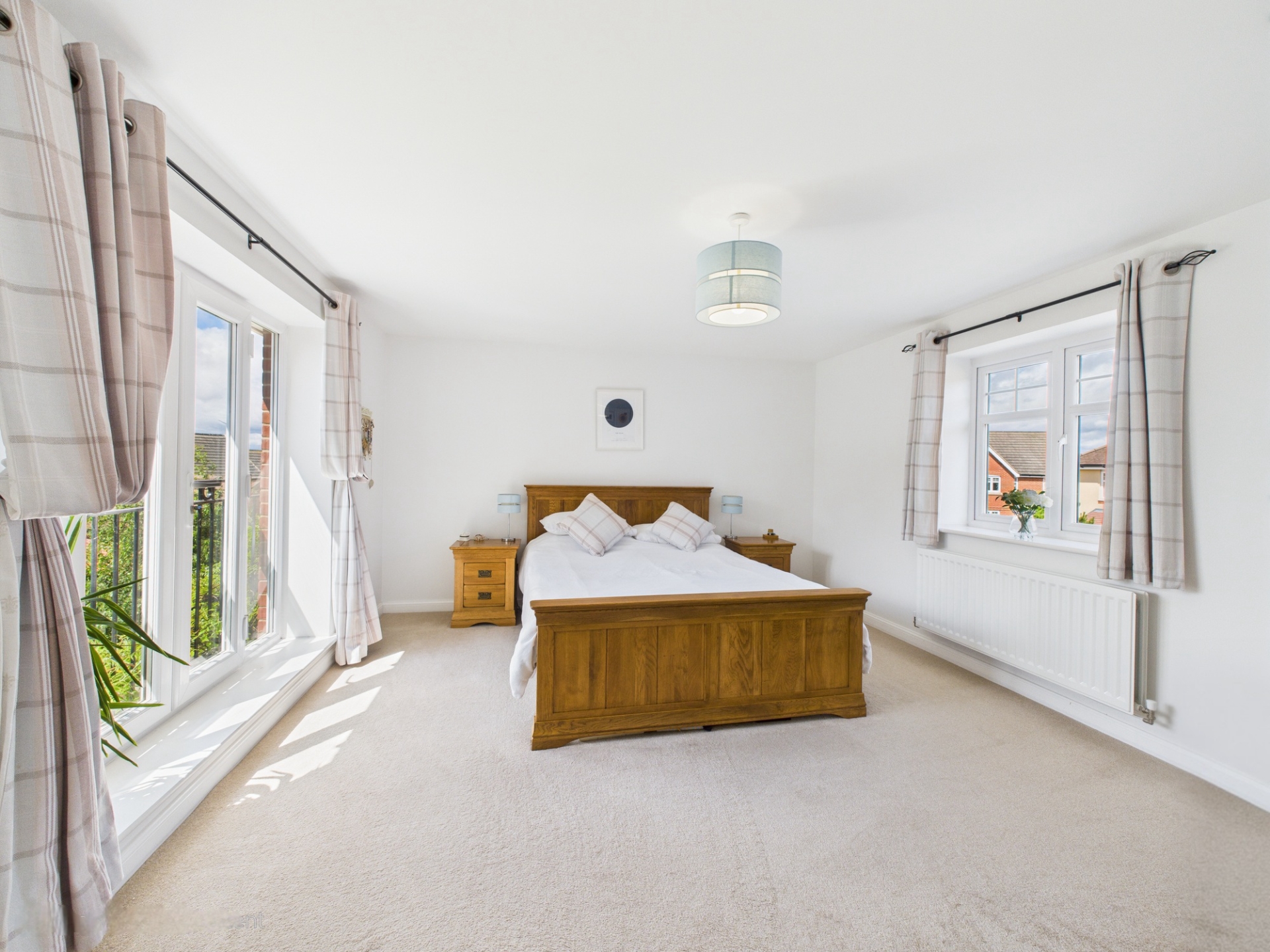 Upstairs, a galleried landing leads to four generous bedrooms. Bedroom one enjoys a Juliet balcony and a stylish en-suite, while bedroom two also benefits from its own en-suite. Two further bedrooms are served by a well-appointed family bathroom. Outside, the property boasts a private, landscaped rear garden, a partial garage, and a double driveway, providing ample off-road parking. EPC Rating: B. Council Tax Band: F
