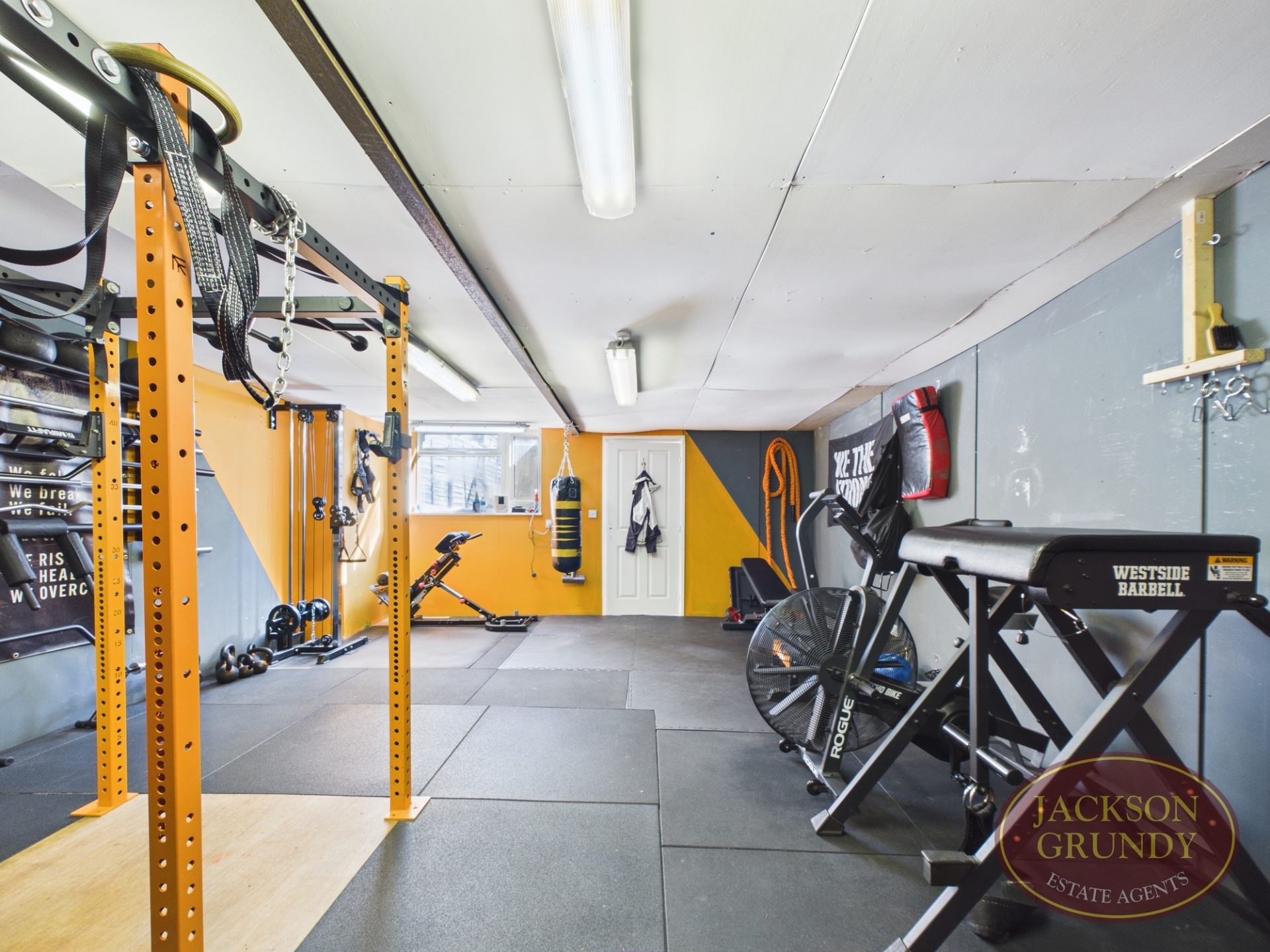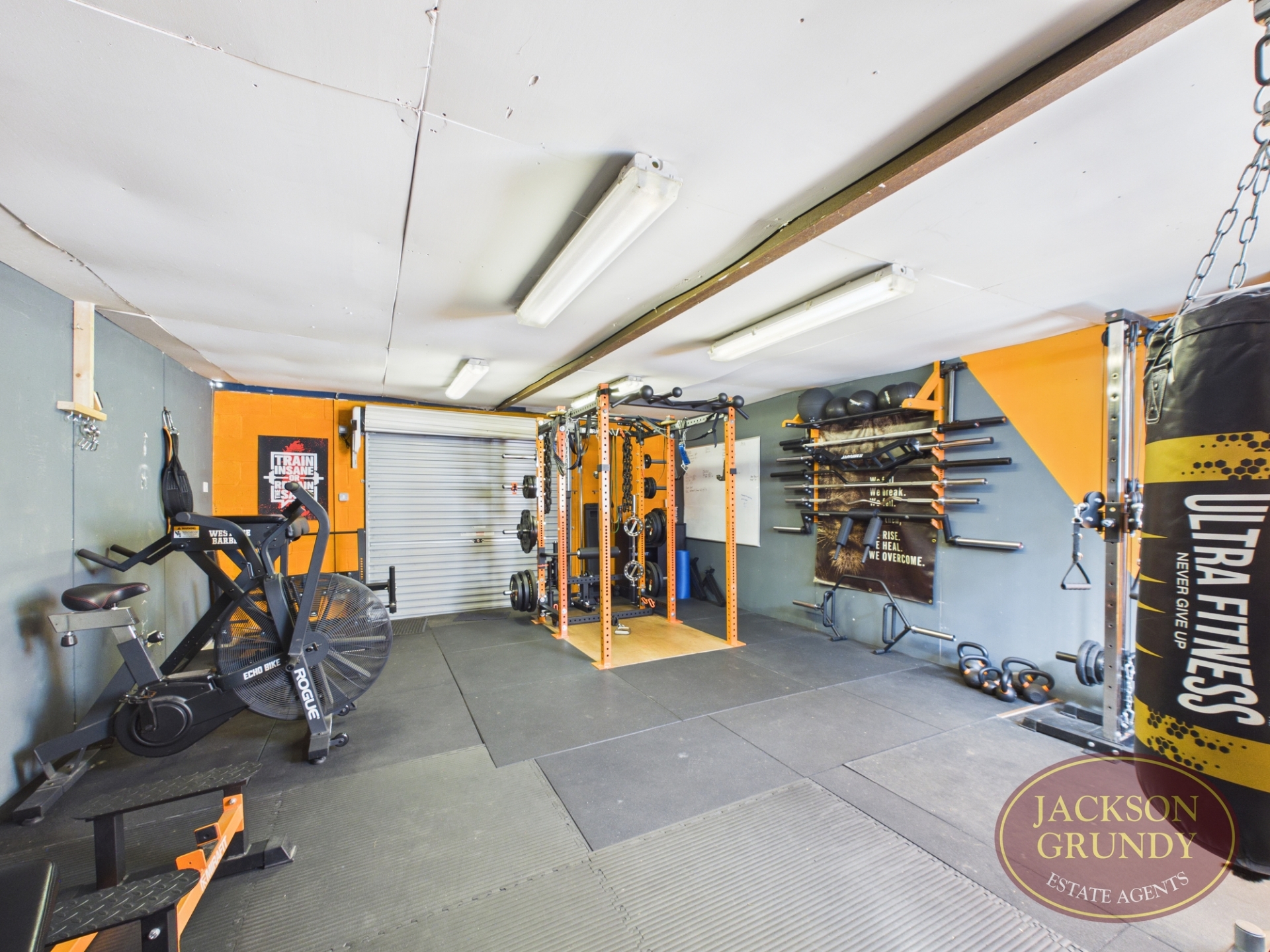 To the outside, there is a generous rear garden with decked area and tiered levels leading down to the workshop and double garage currently utilised as a gym. To the front is a small frontage area.