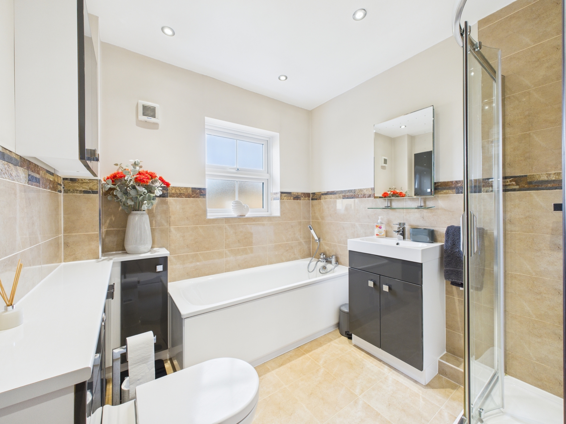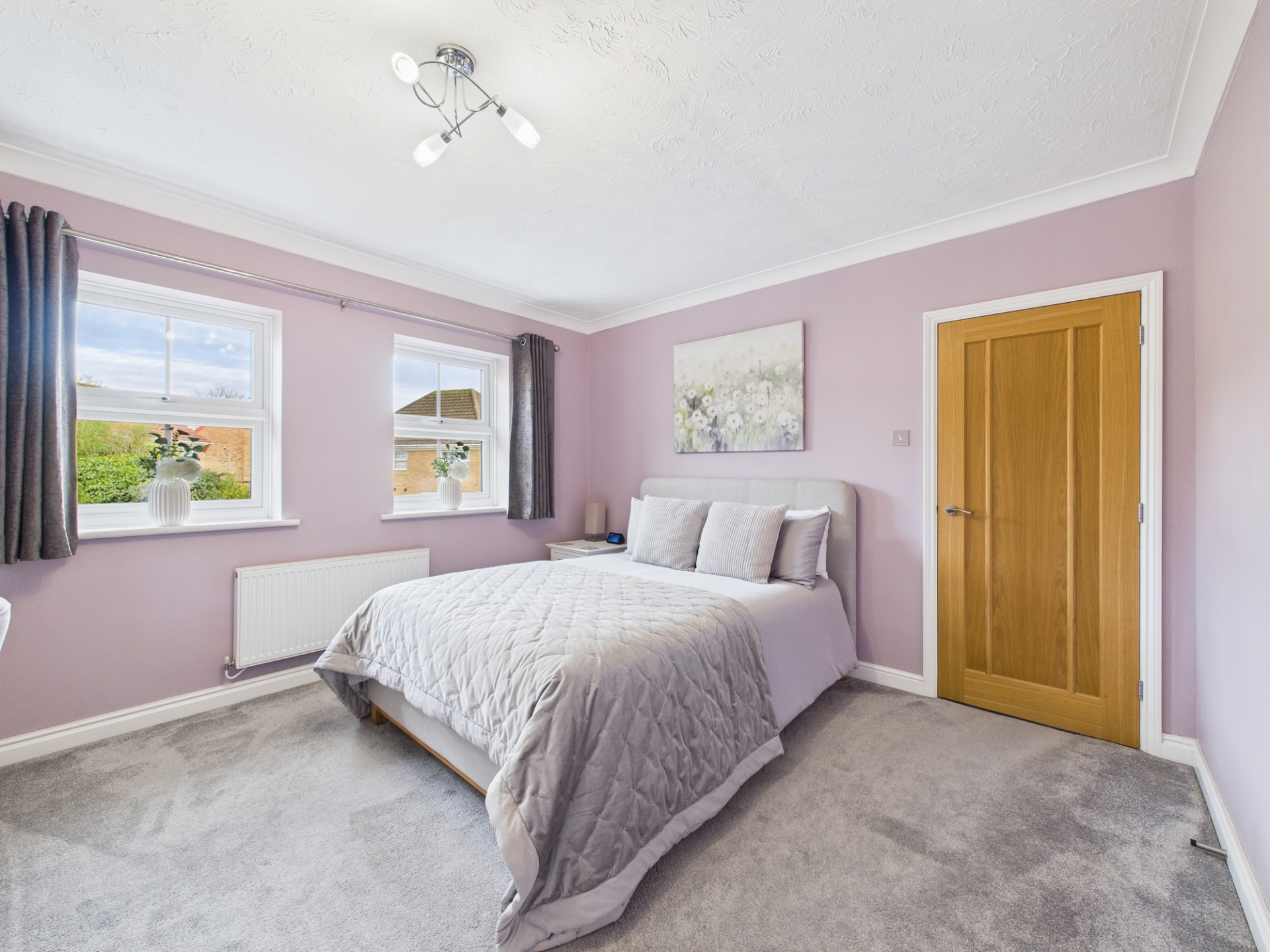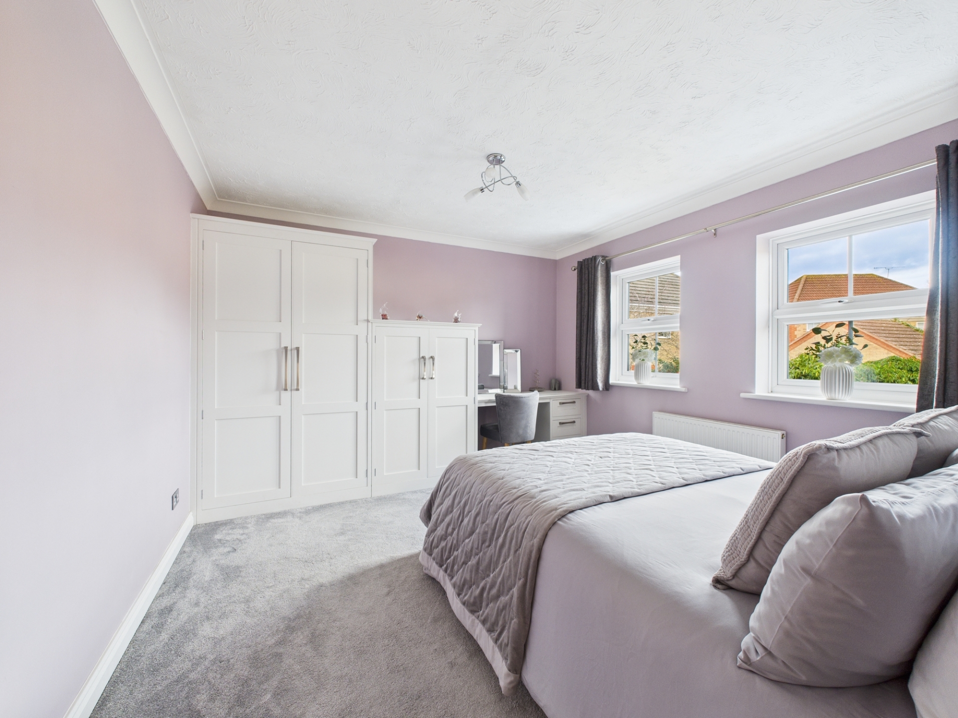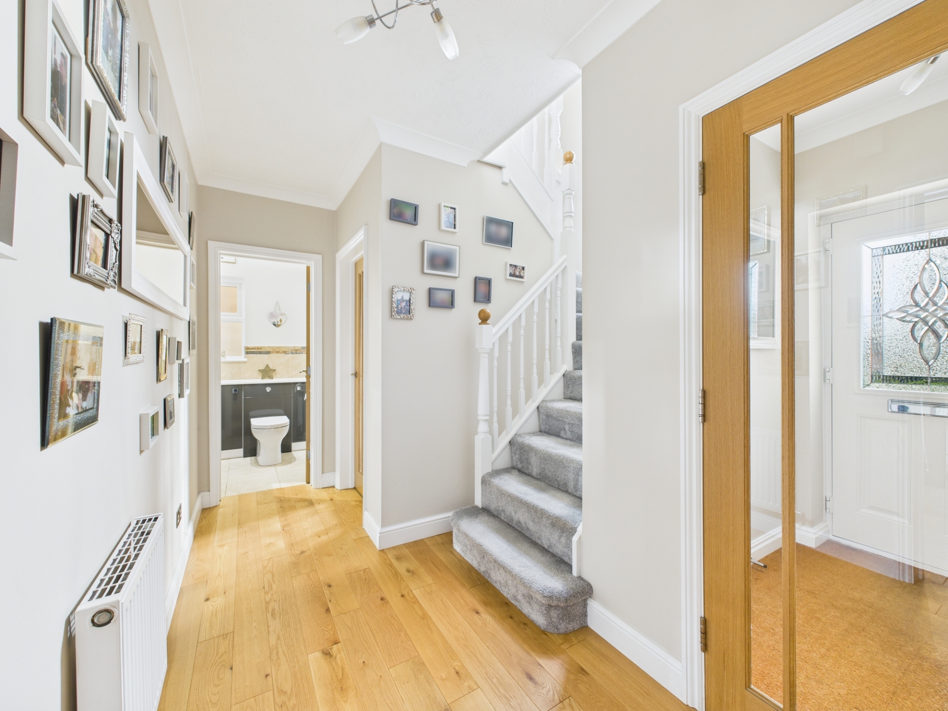 The first-floor landing leads to the impressive principal bedroom, offering excellent space, a vaulted ceiling and fitted wardrobes between which is the modern en-suite with double shower. The second bedroom is also a comfortable double with fitted wardrobes and views over the rear garden. Beyond the contemporary family bathroom with quadrant shower are the remaining bedrooms, which include another double room and a well proportioned single.