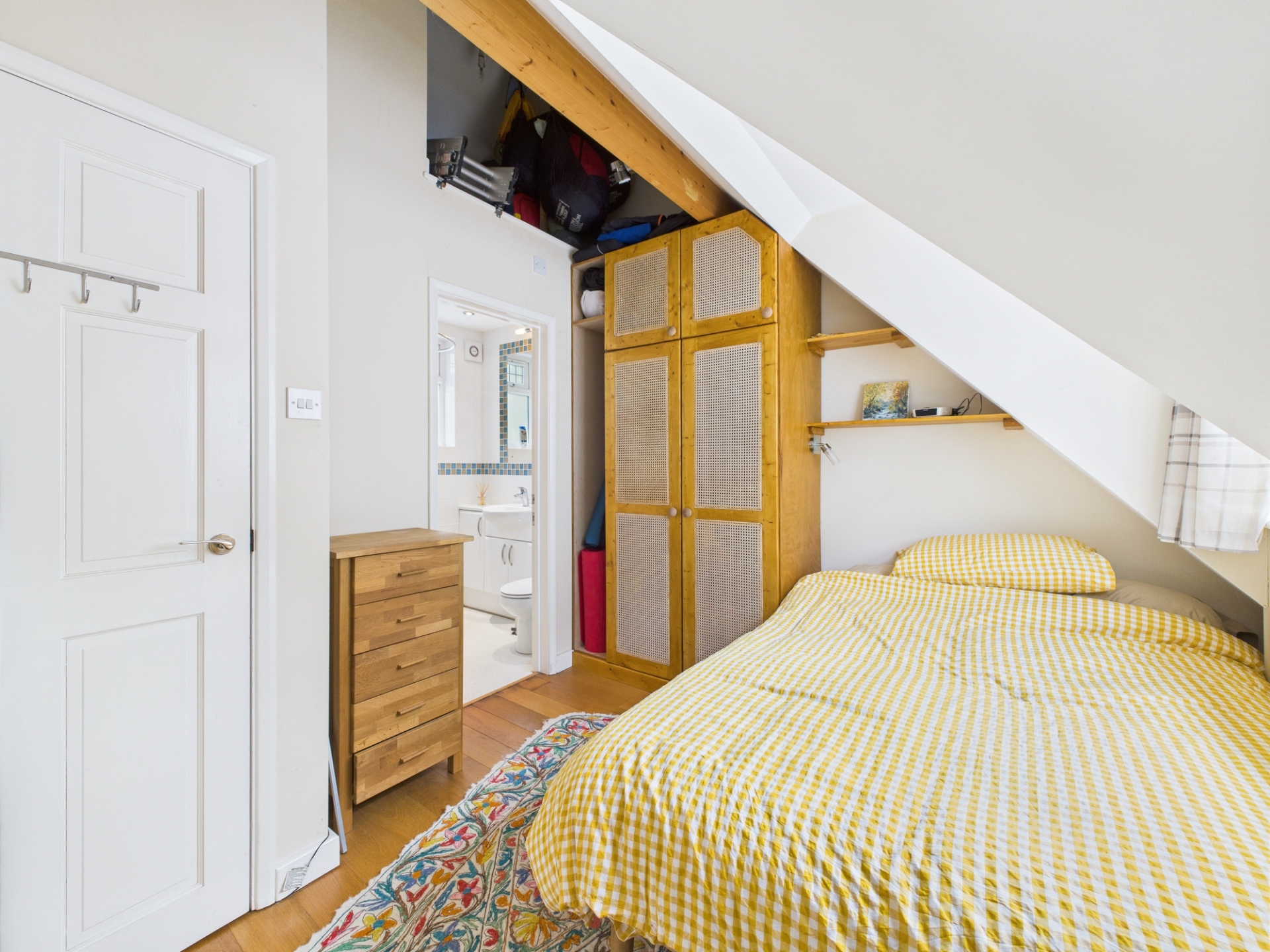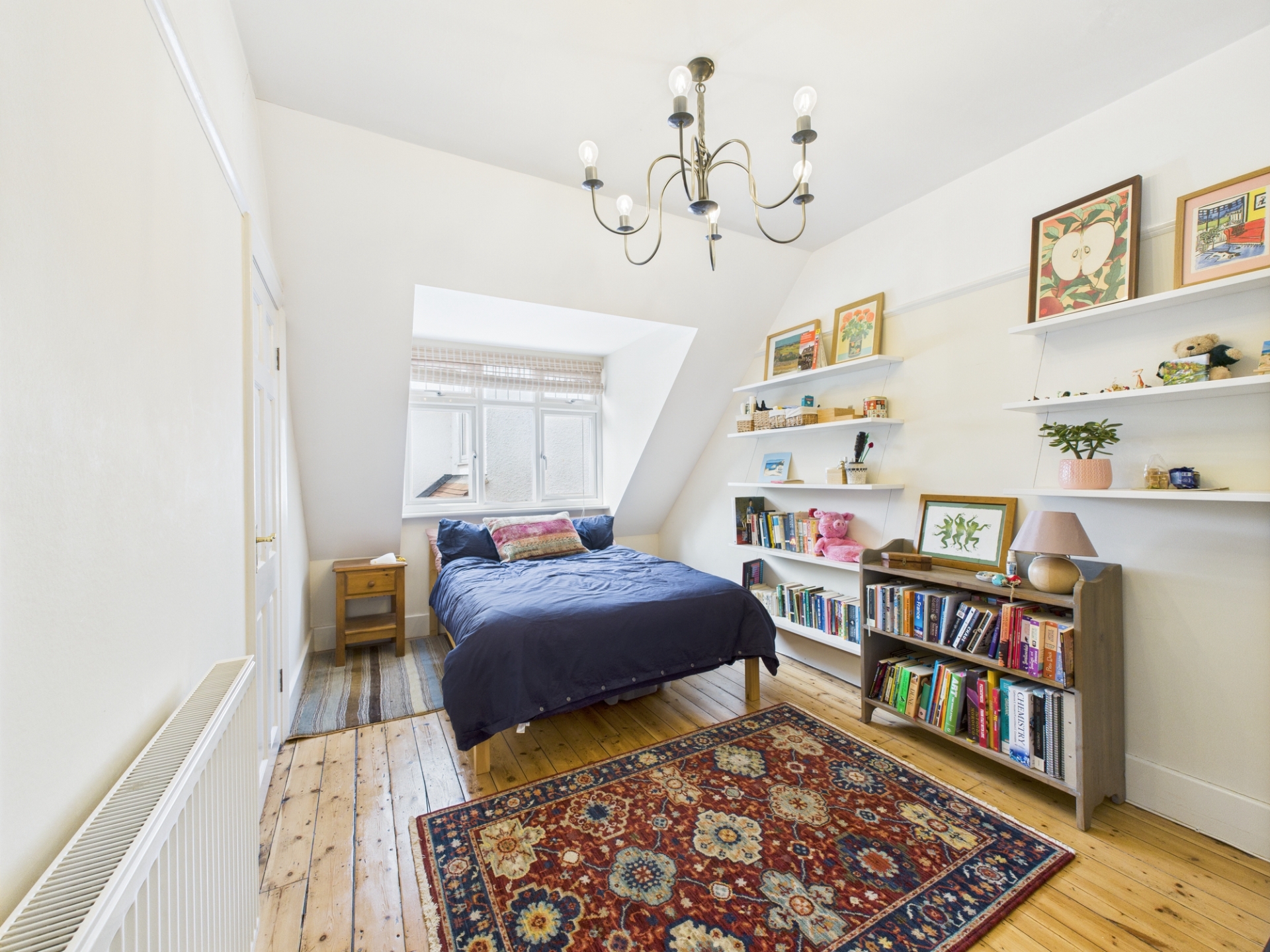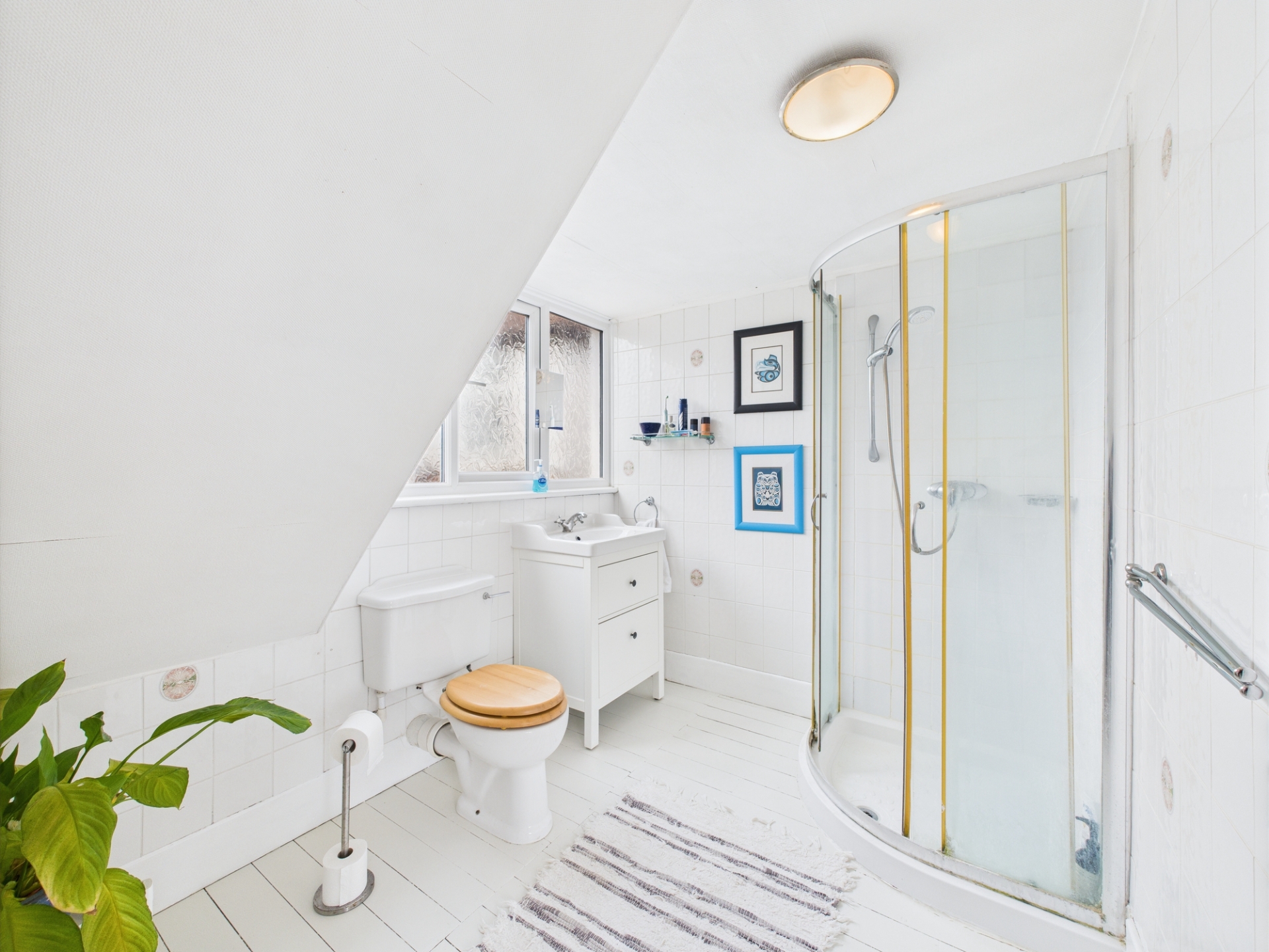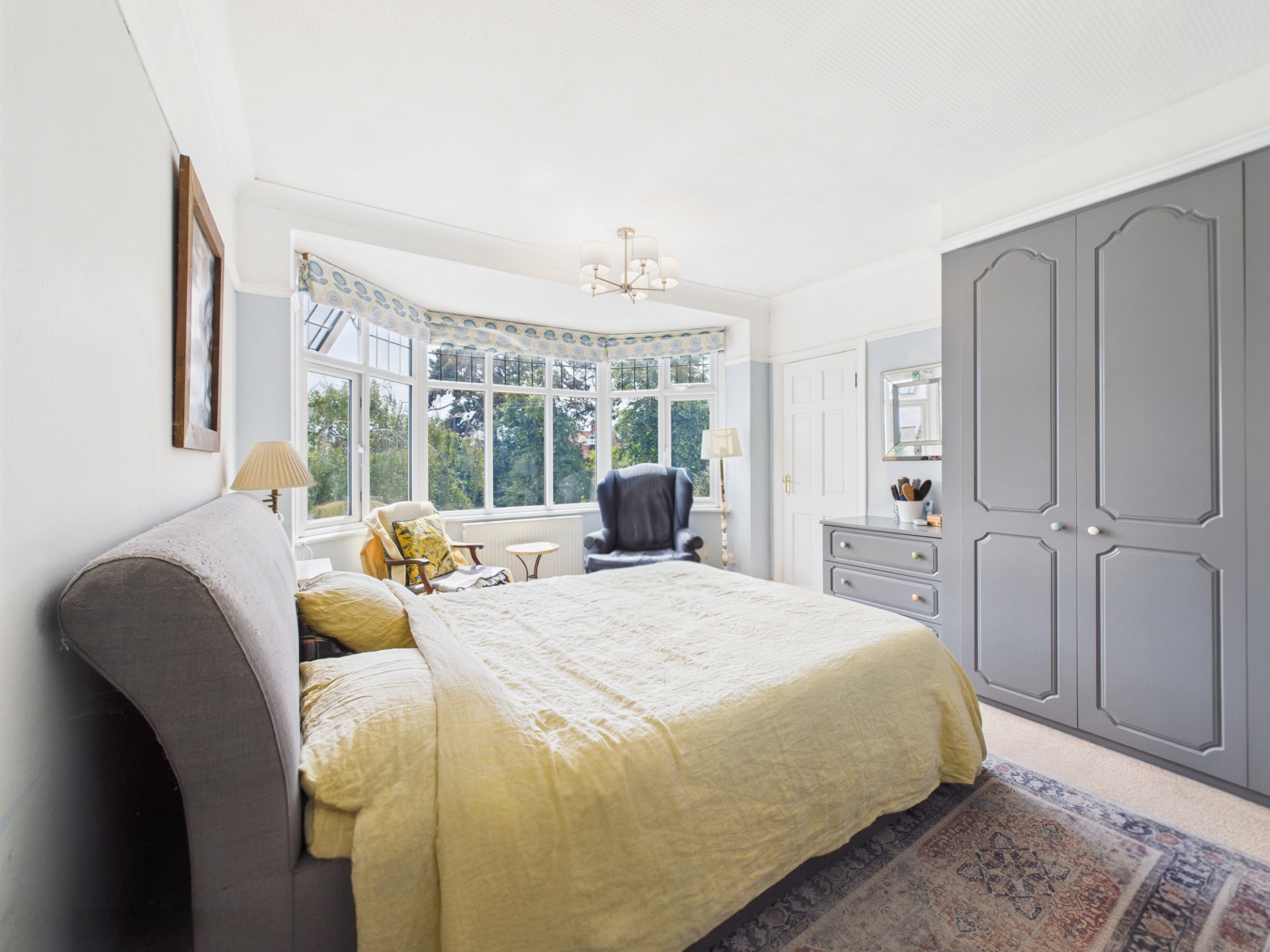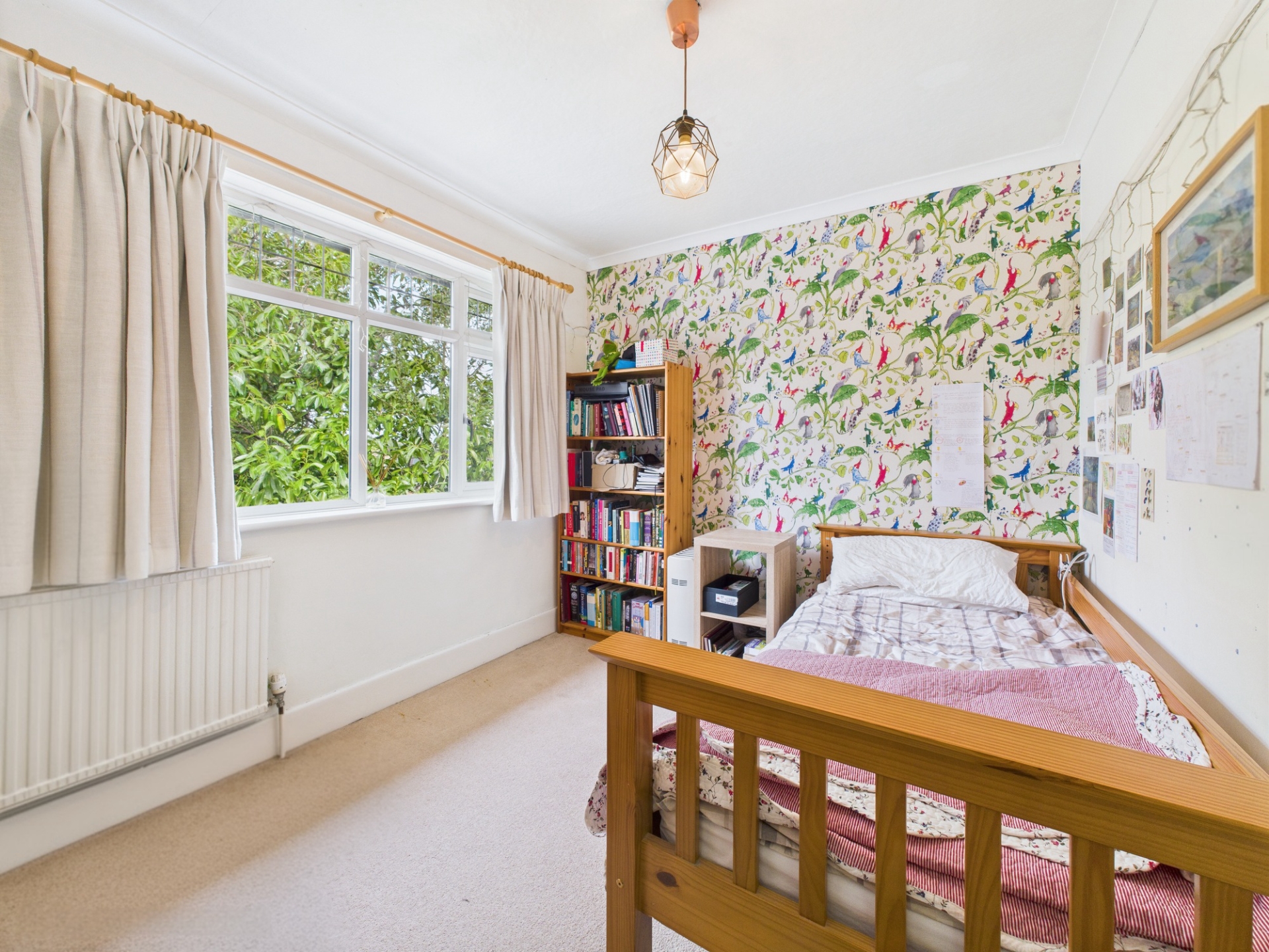 Upstairs, the principal bedroom enjoys a bay window overlooking the front garden, fitted wardrobes, and a modern en-suite shower room. The second bedroom is a generous double with built-in storage, while bedrooms three and four are comfortable doubles. These are served by a contemporary family bathroom.