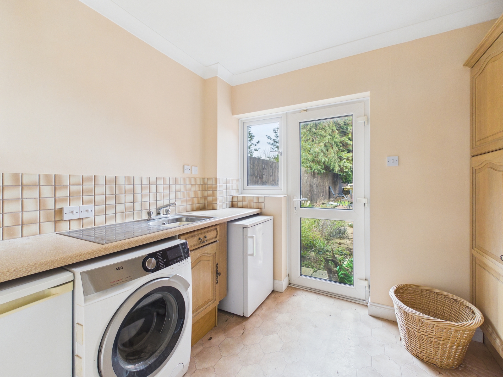 Externally, the property is screened from the road by mature trees, enhancing its privacy. A large block-paved driveway provides ample off road parking and leads to the double garage. The rear garden is private and arranged over two tiers.