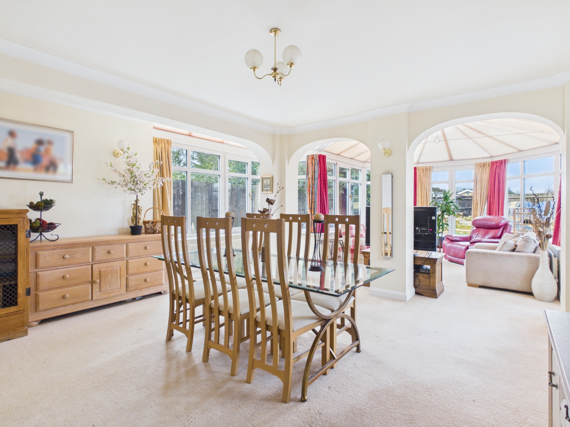 In brief the property comprises WC, an attractive staircase rising to the upper floors, and a courtesy door providing internal access to the double garage. Doors lead to the utility room, kitchen and the principal living room. From here, a door opens into the dining area, and flows seamlessly through archways into the living room and conservatory. On the first floor, a spacious landing provides access to four bedrooms and the family bathroom. The exceptionally large principal bedroom sits to the front of the property, complemented by two further double bedrooms and a generous single bedroom, offering flexibility for family life or home working.