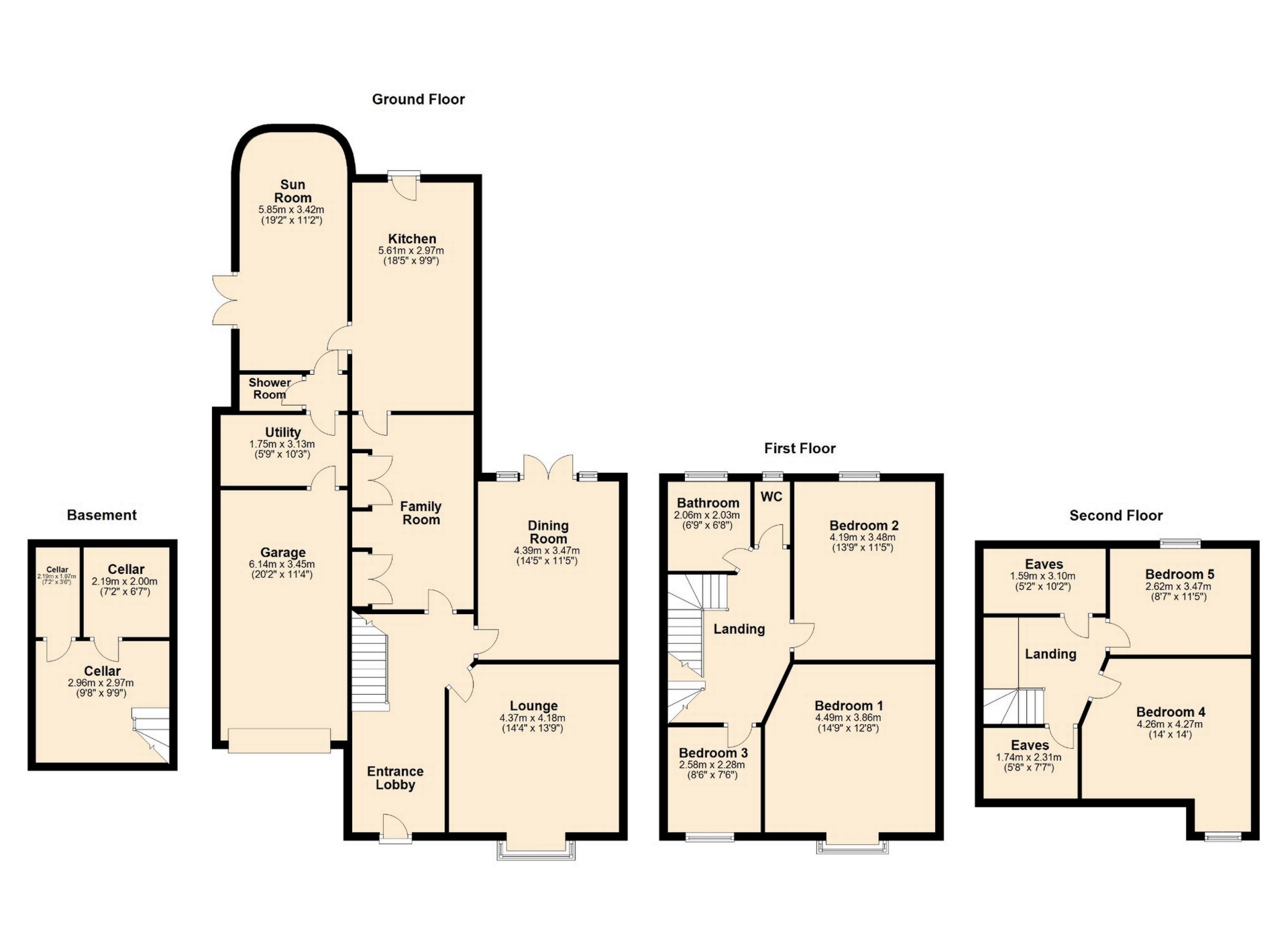 SUN ROOM 5.85m x 3.42m (19’2 x 11’2)