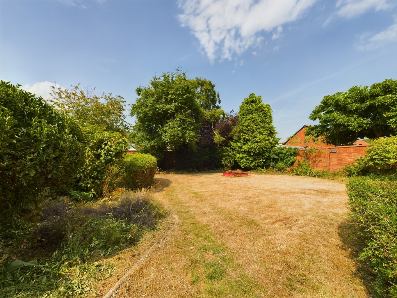 The garden is mainly laid to lawn with shrubs and bush borders. Large plot to the side of the property. Enclosed by brick wall.