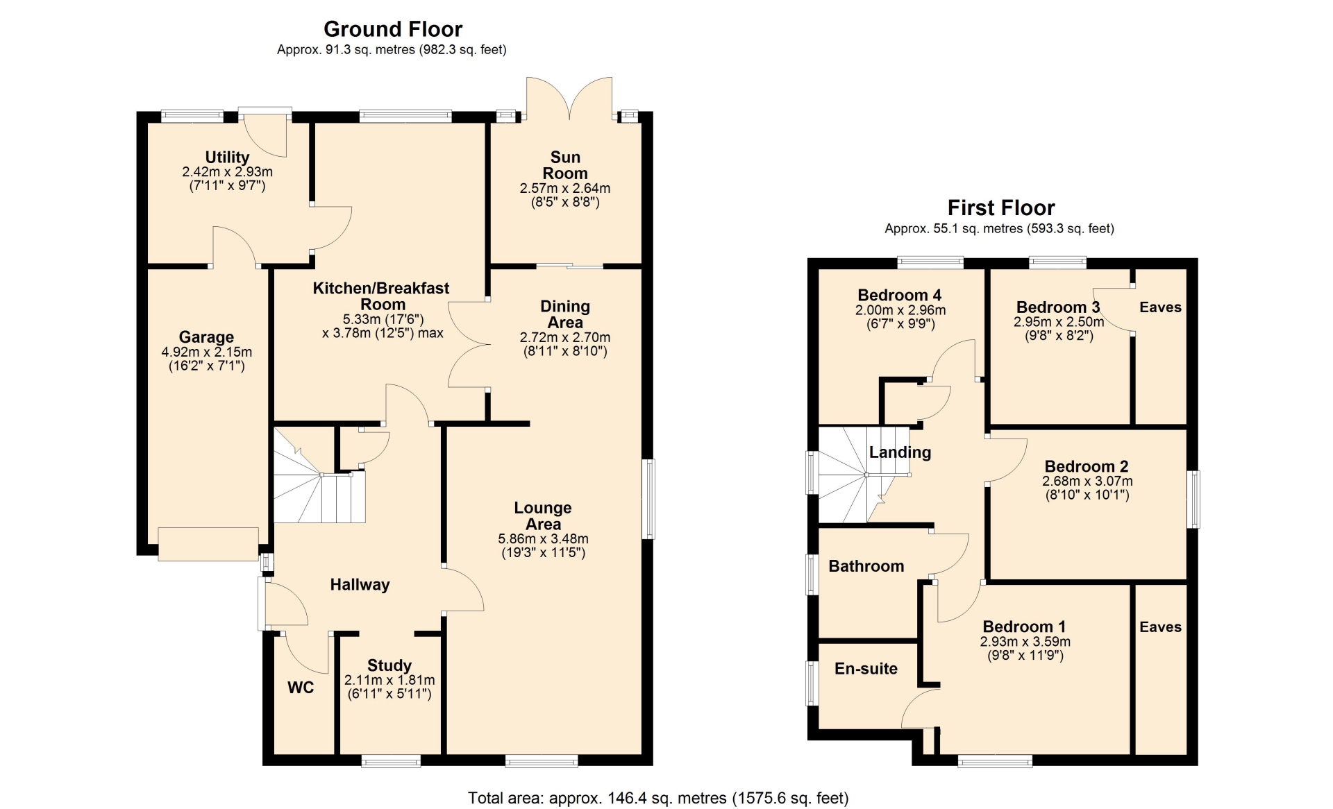 Lounge Area: 19'3 x 11'5 UPVC double glazed windows to front and side elevations. Radiator. Feature cast iron open fireplace with decorative inserts, tiled hearth and mantel surround. Television point. Open plan to dining area.Dining Area: 8'11 x 8'10 Radiator. Obscure glazed panelled double doors to kitchen/breakfast room. Sliding doors leading to the sunroom.