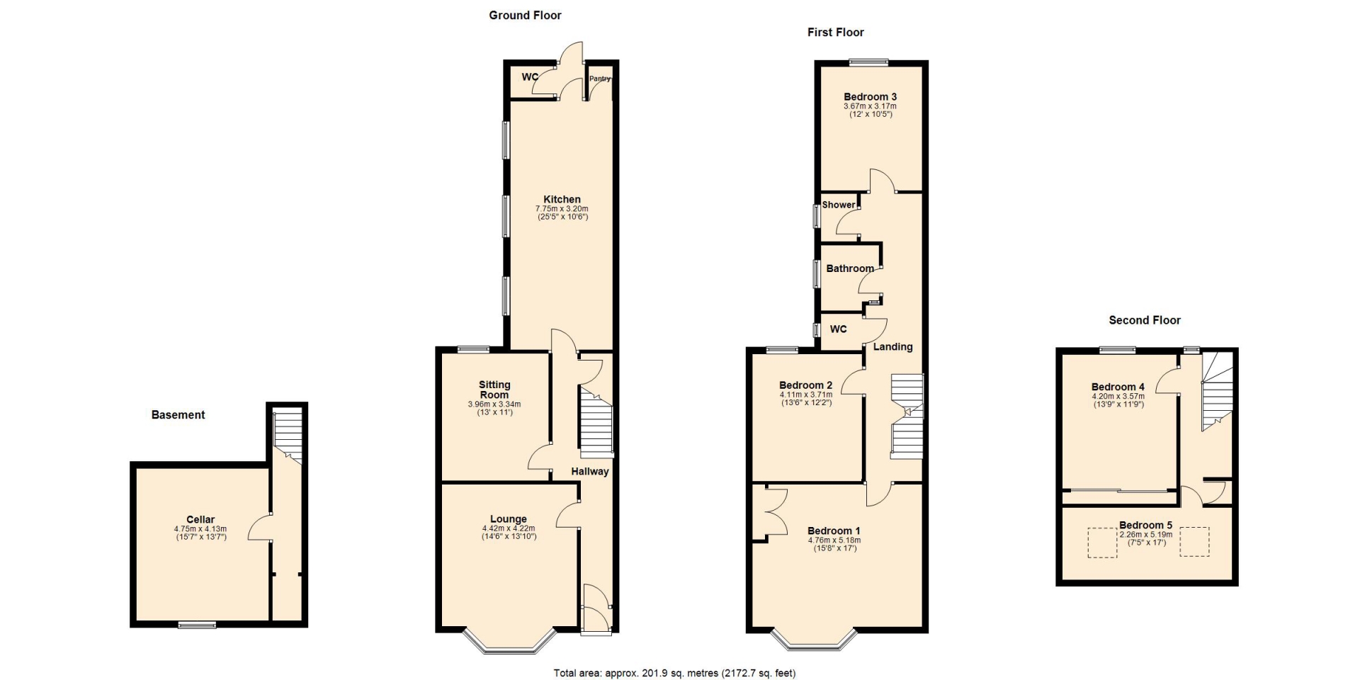 BEDROOM FIVE 2.26m x 5.18m (7'5" x 17')