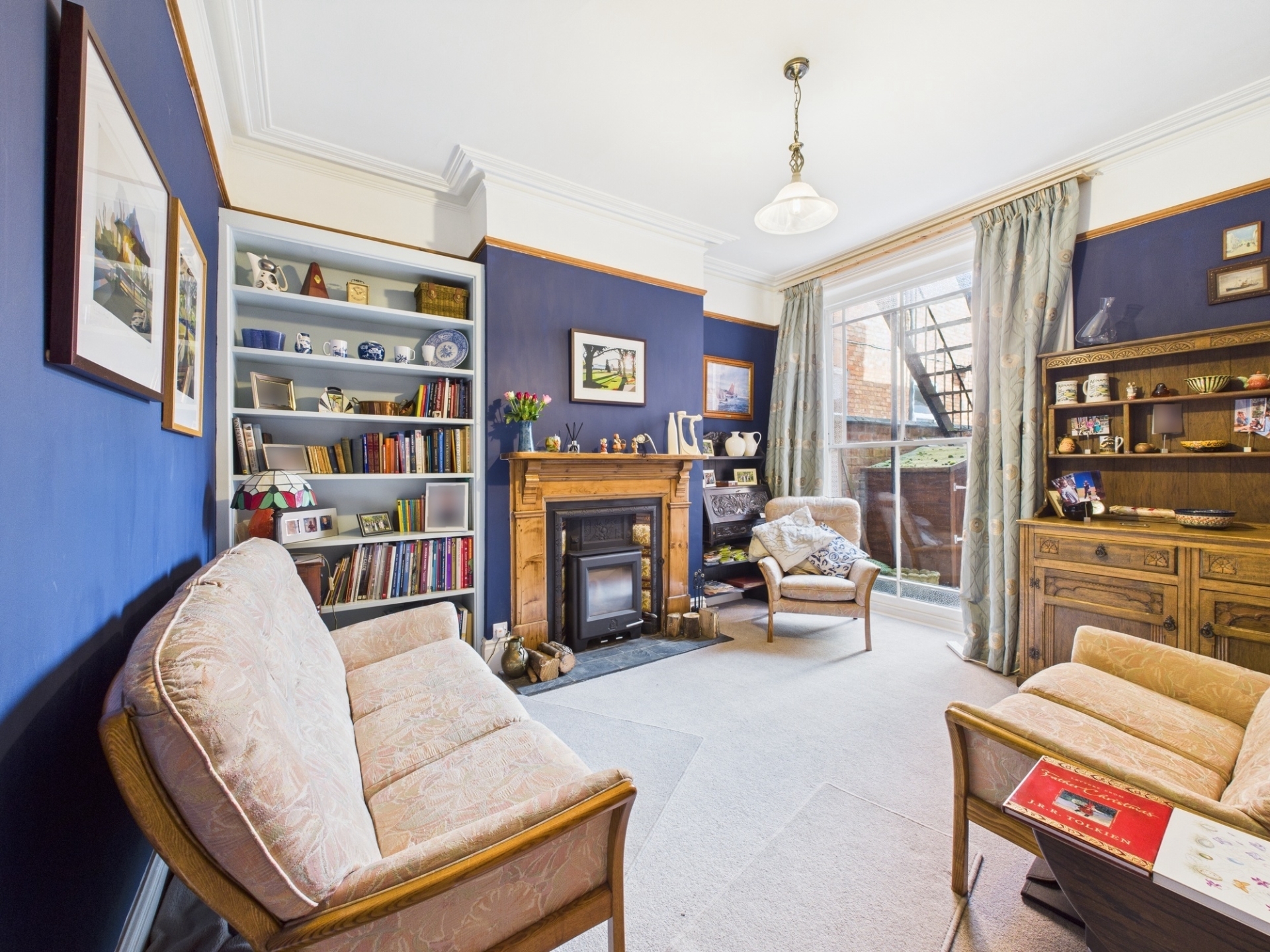 uPVC sash window to front elevation. Log burner with marble surround. Feature coving. Picture rail. Fitted shelving.