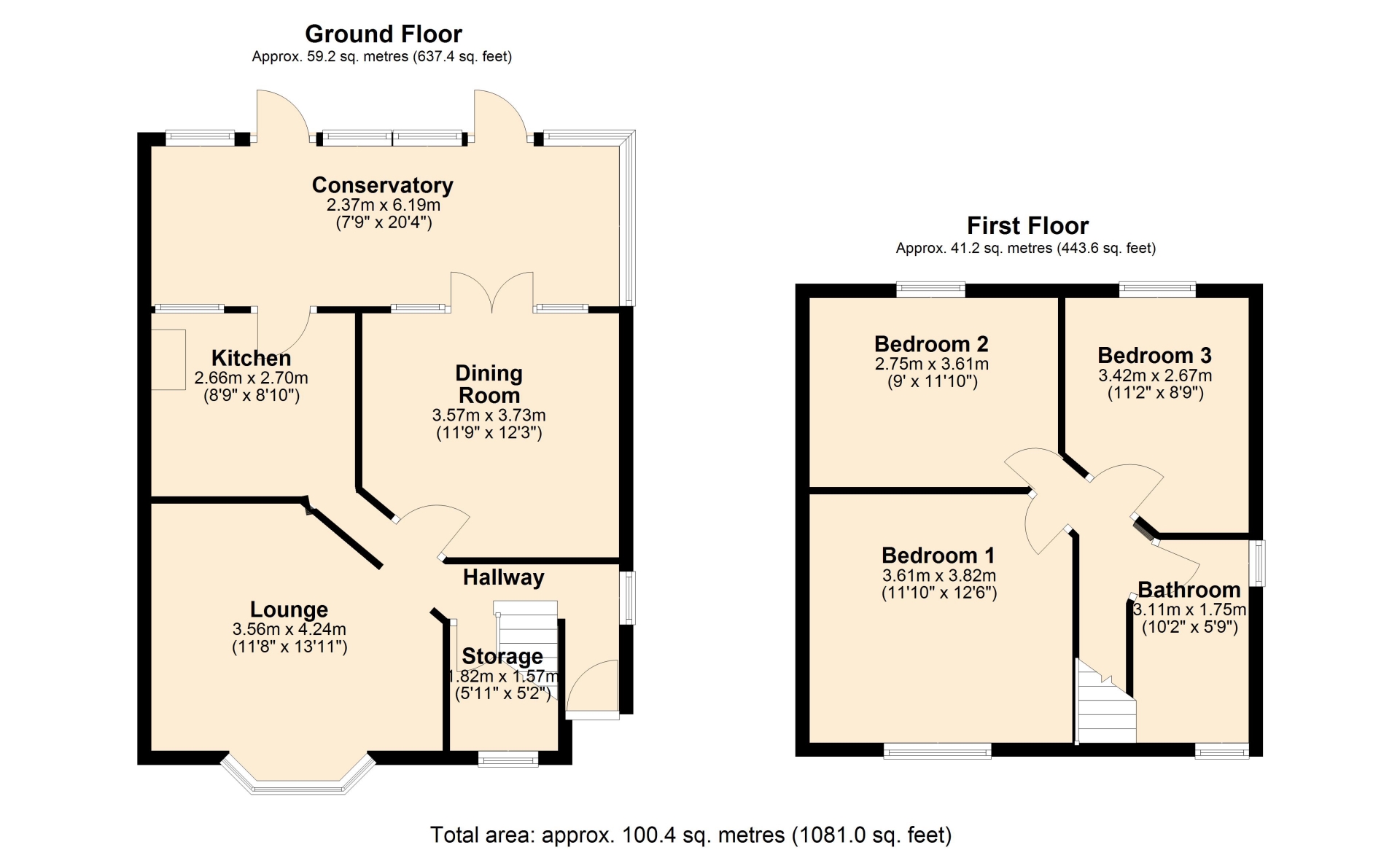 LOUNGE 3.56m x 4.24m (11'8" x 13'11")