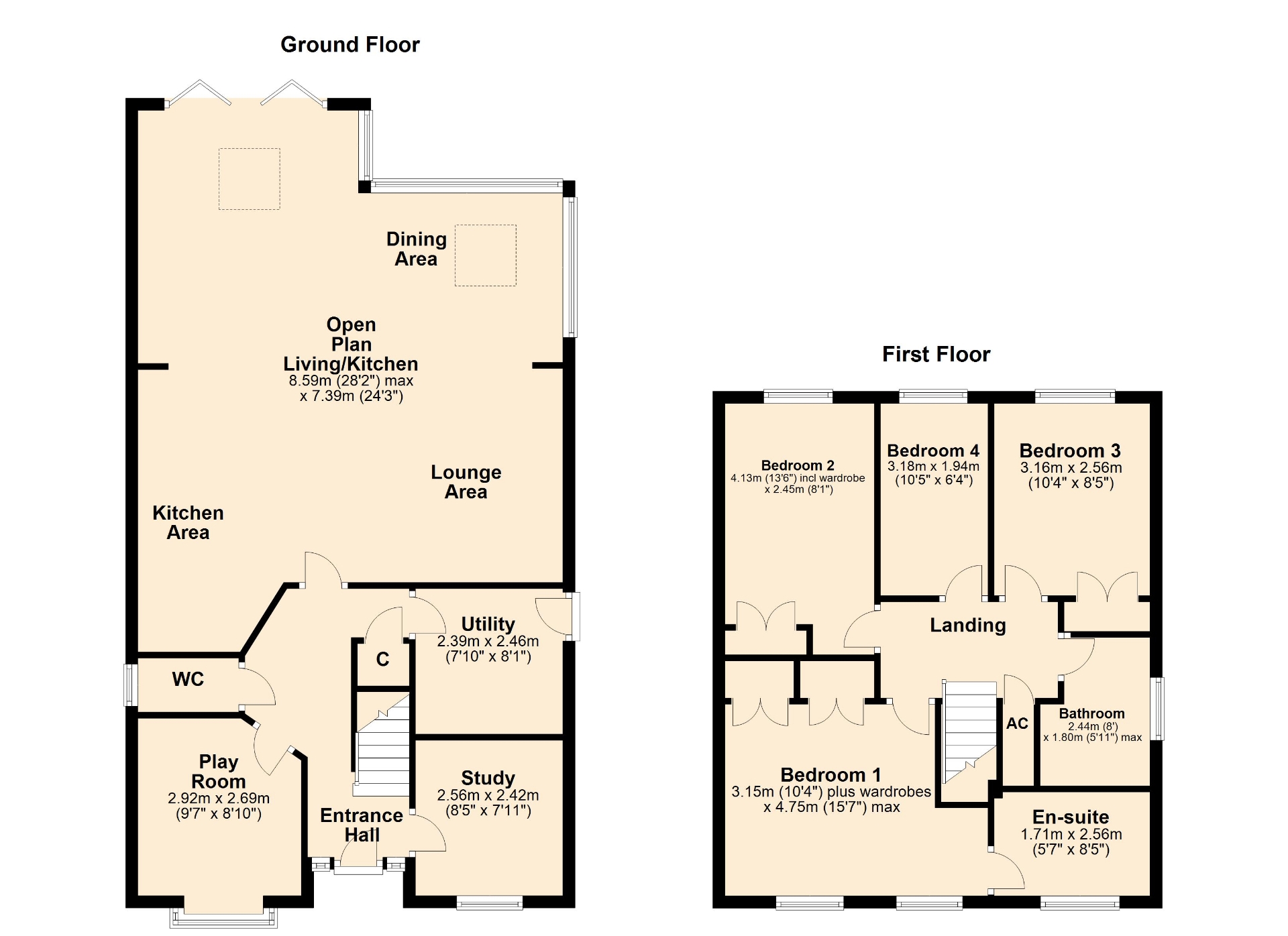 To the first floor is a landing with doors to four bedrooms (master with re-fitted stylish en-suite) and a family bathroom.