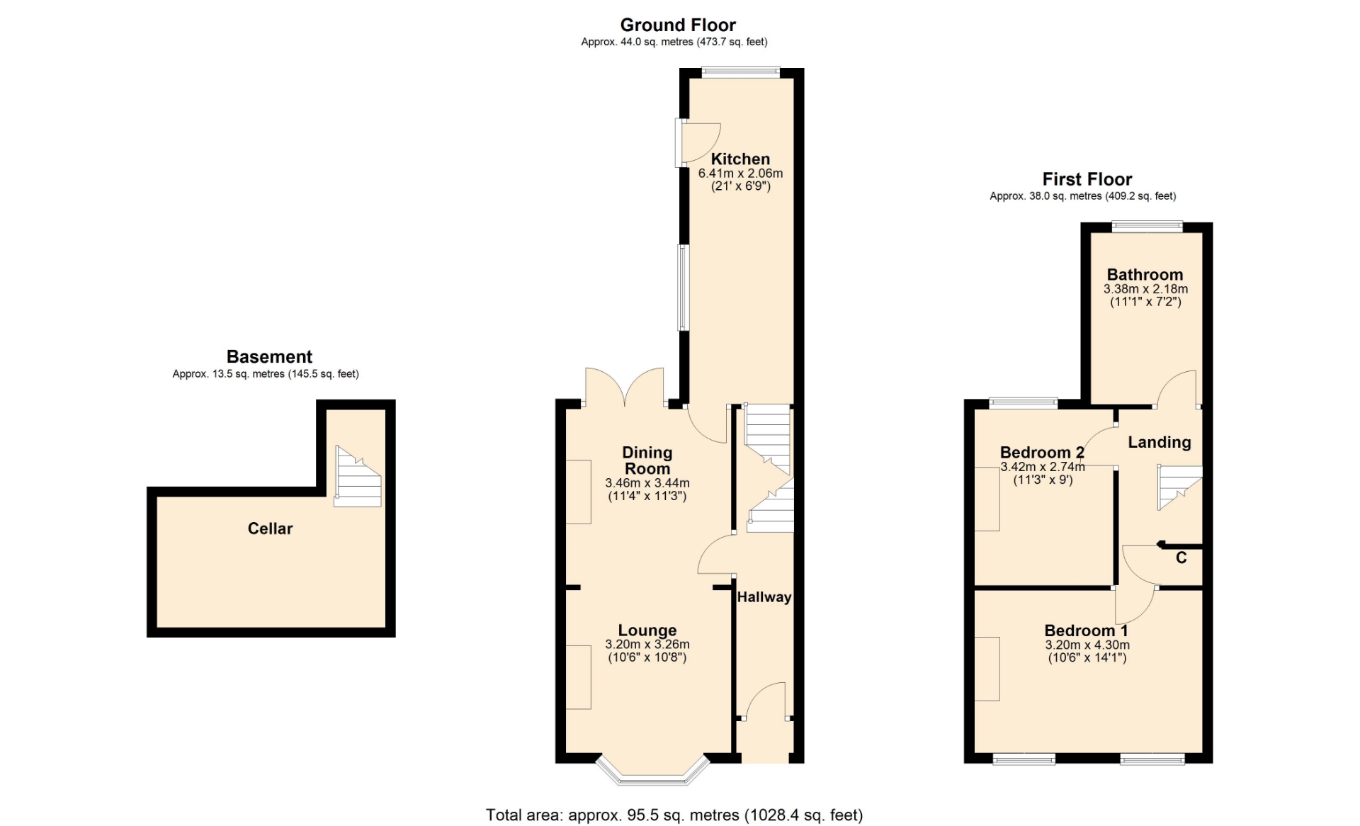 Upstairs you will find two double sized bedrooms with feature fireplaces and alcoves and a stylish four piece white bathroom suite with a feature back to wall bath tub and a separate shower enclosure.