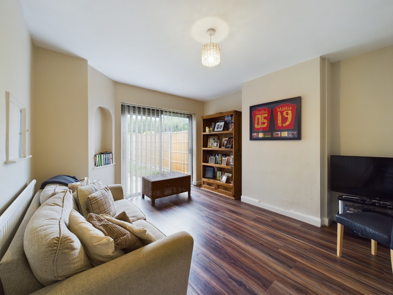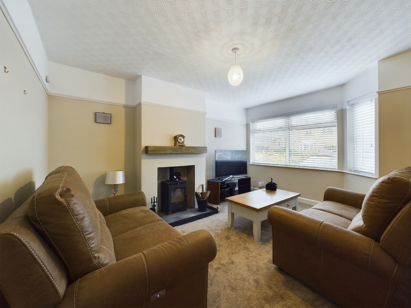 uPVC double glazed window to front elevation. Radiator. Feature fireplace with built in log burner. Television point. Picture rail.