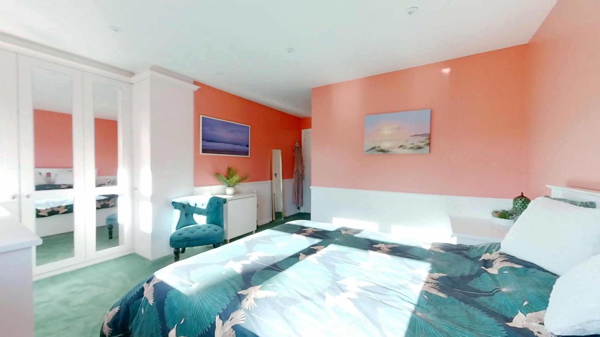 Two uPVC double glazed windows to front elevation. Radiator. Fitted wardrobes. Door to: