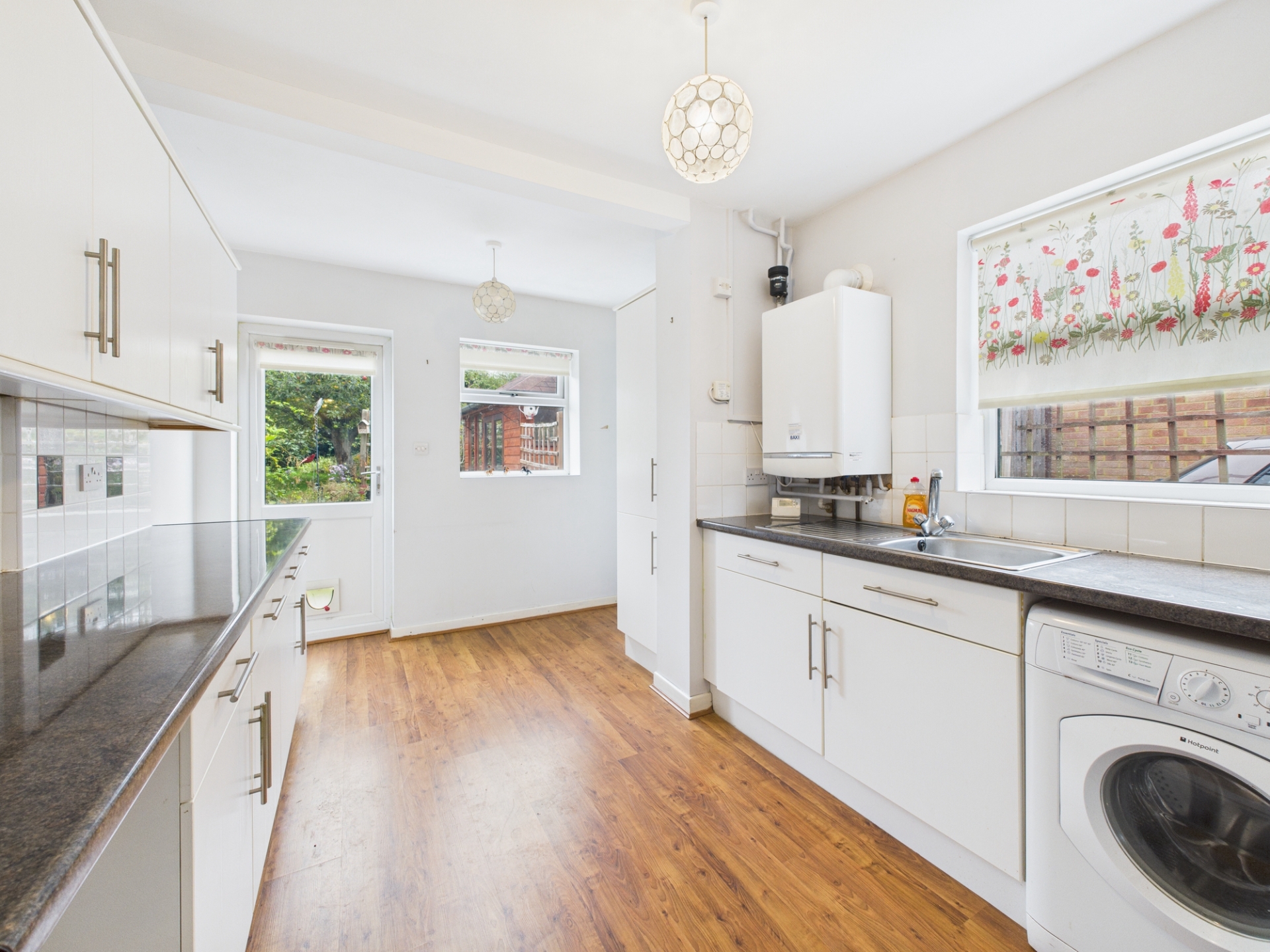 uPVC double glazed window to rear and side elevation. uPVC glazed door leading to rear garden. Radiator. A range of wall mounted and base level units with solid worksurface over. Space for white goods. Stainless steel sink and drainer. Baxi Boiler.