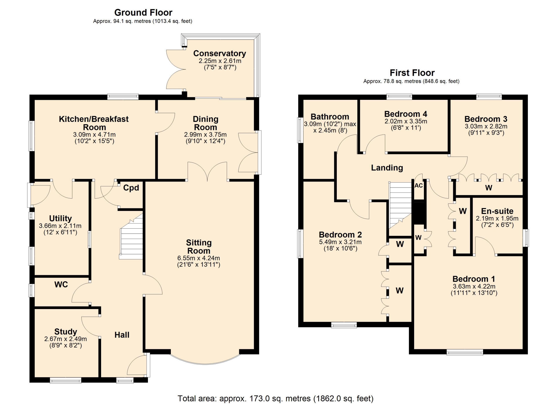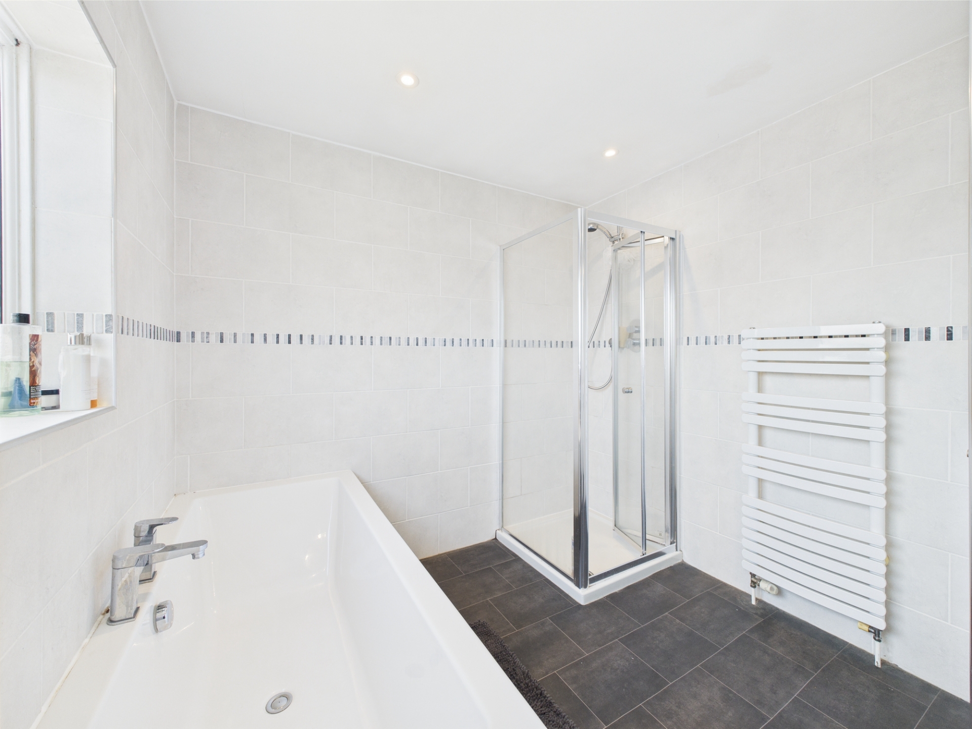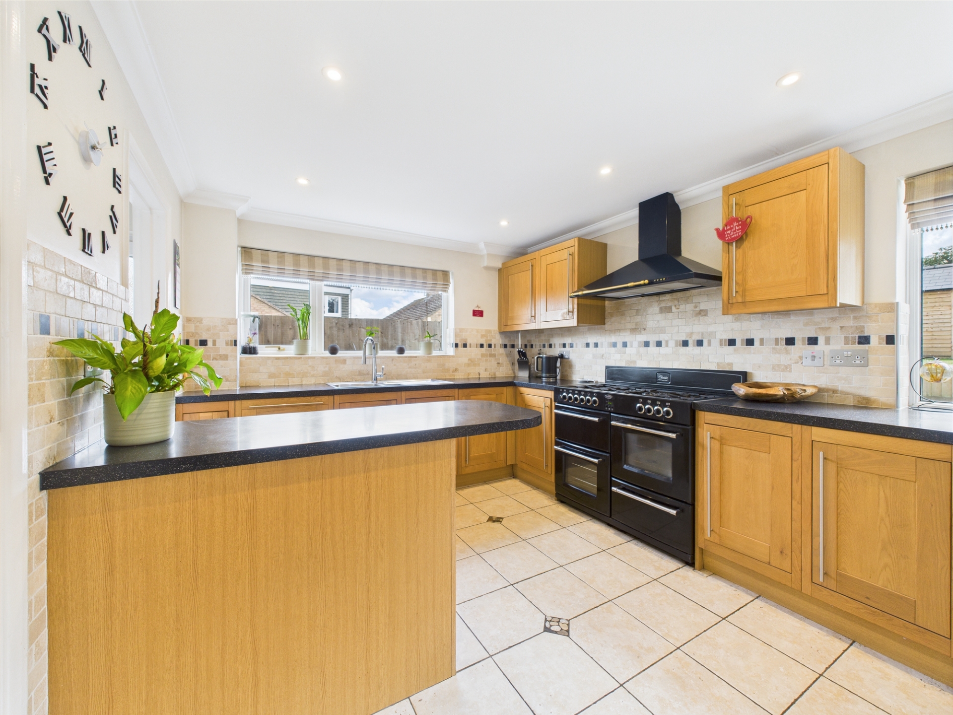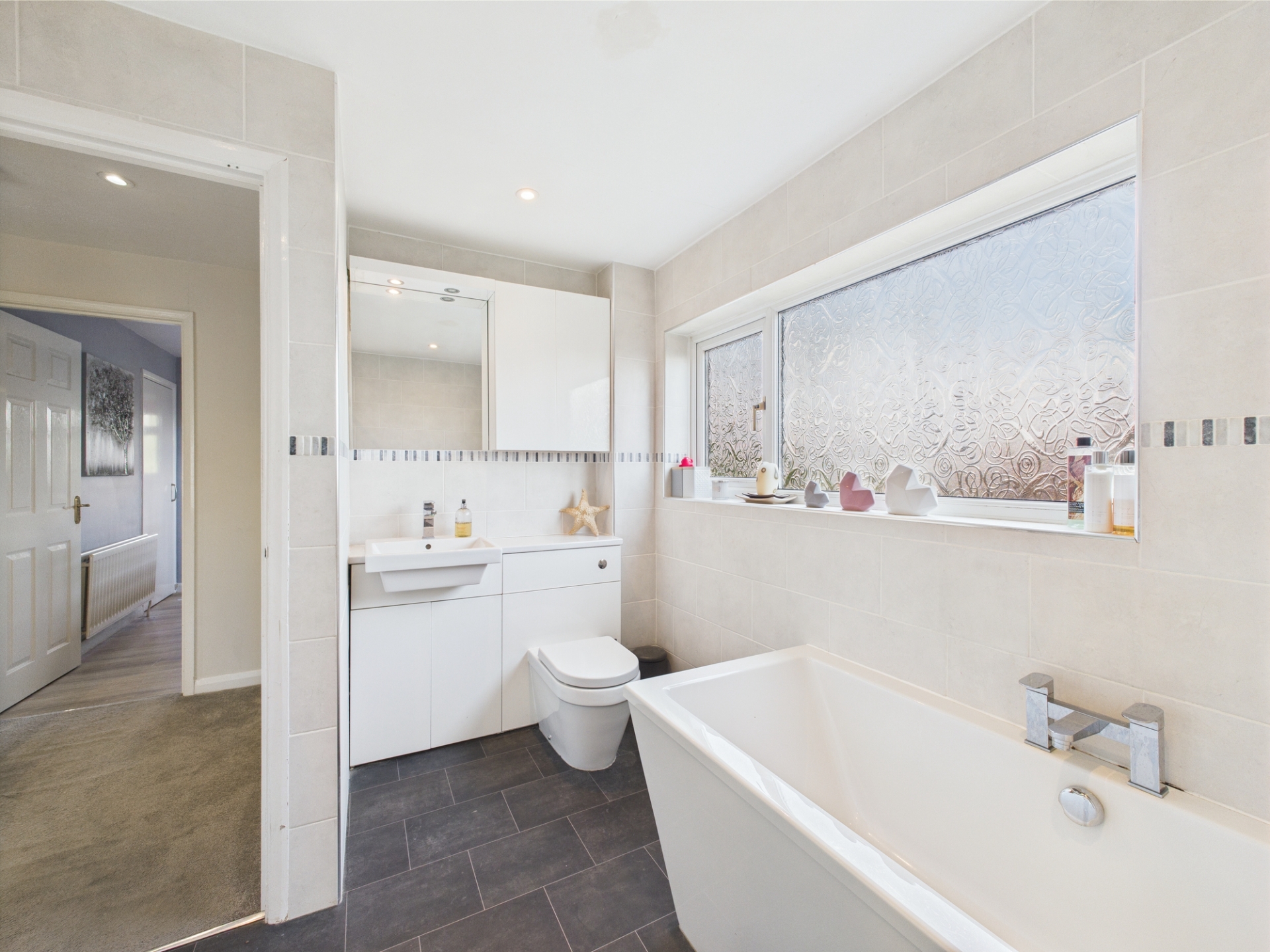 Upstairs has also been extended and has four bedrooms, the principal bedroom has a dressing area at the entrance with fitted wardrobes and a large window which overlooks the front with Church views. There is also an en-suite shower room. Bedroom two is a large dual aspect room with fitted wardrobes, bedroom three is another double also with fitted wardrobes and the fourth bedroom is a generous single. The family bathroom has a four piece suite including a separate shower and freestanding bath.