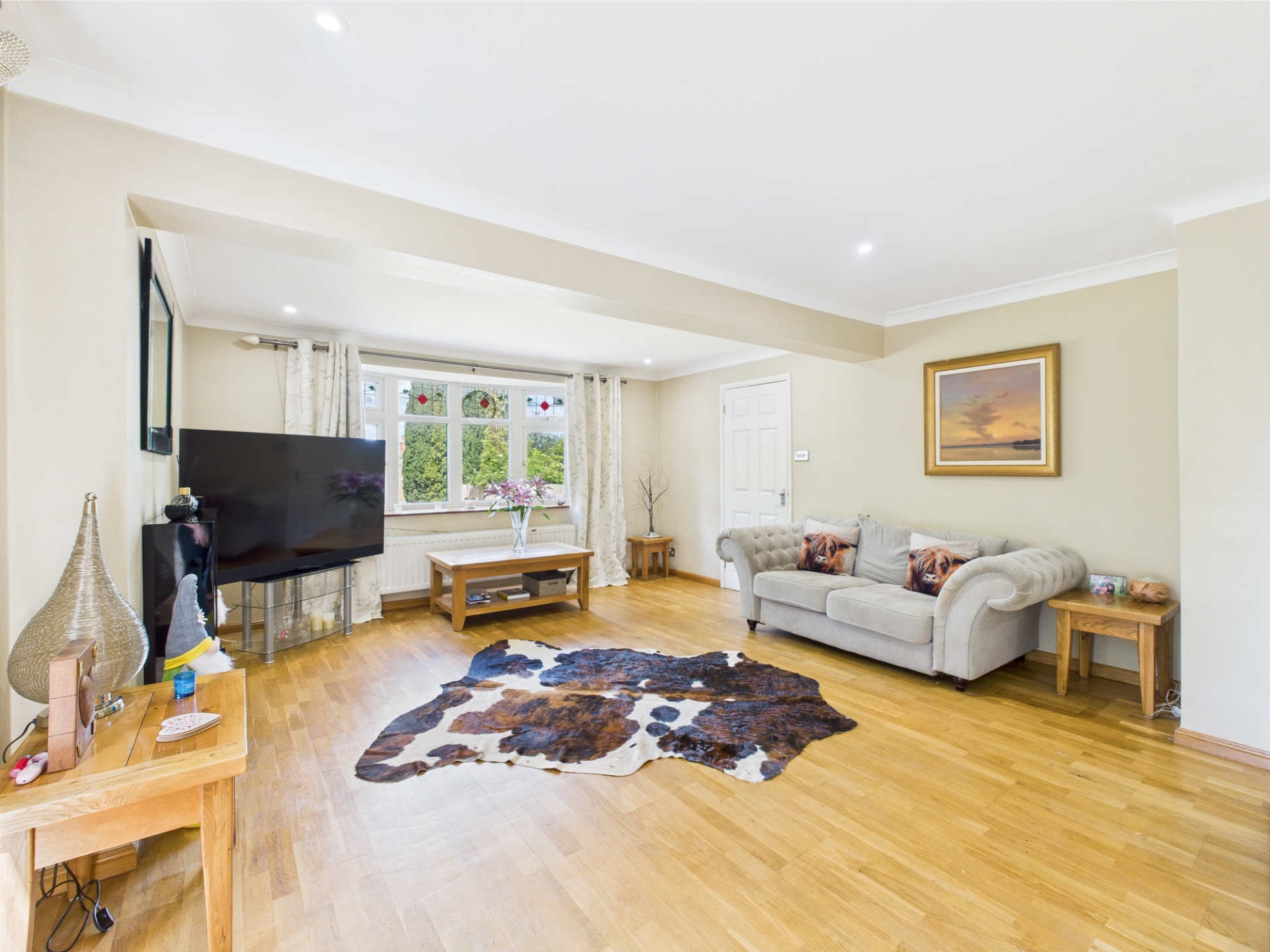 The ground floor has been extended and offers great space with its separate study, cloakroom, large sitting room with bay window and French doors onto a secluded sun terrace. Double doors lead into the dining room beyond which is the conservatory and modern kitchen / breakfast room. The kitchen is fitted with oak units and has a freestanding range cooker, dishwasher, fitted quartz topped breakfast bar and a door leading to a large utility room.