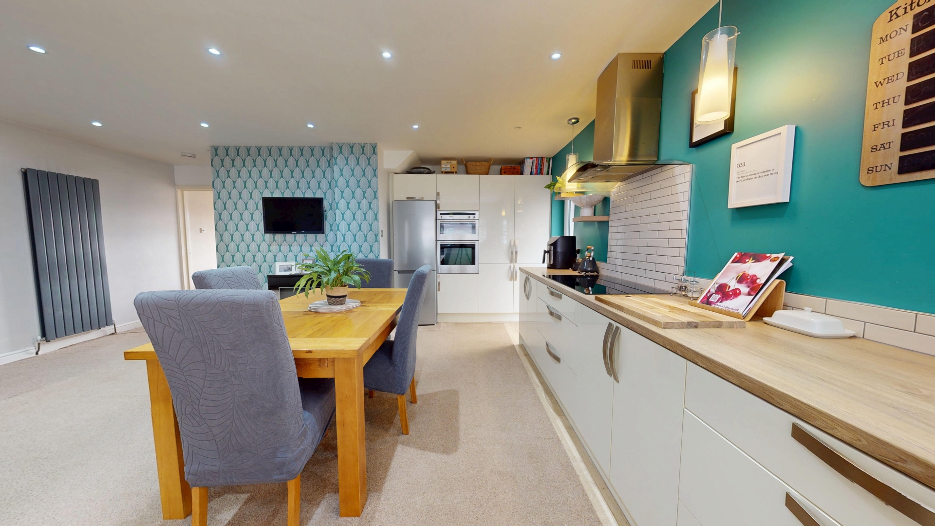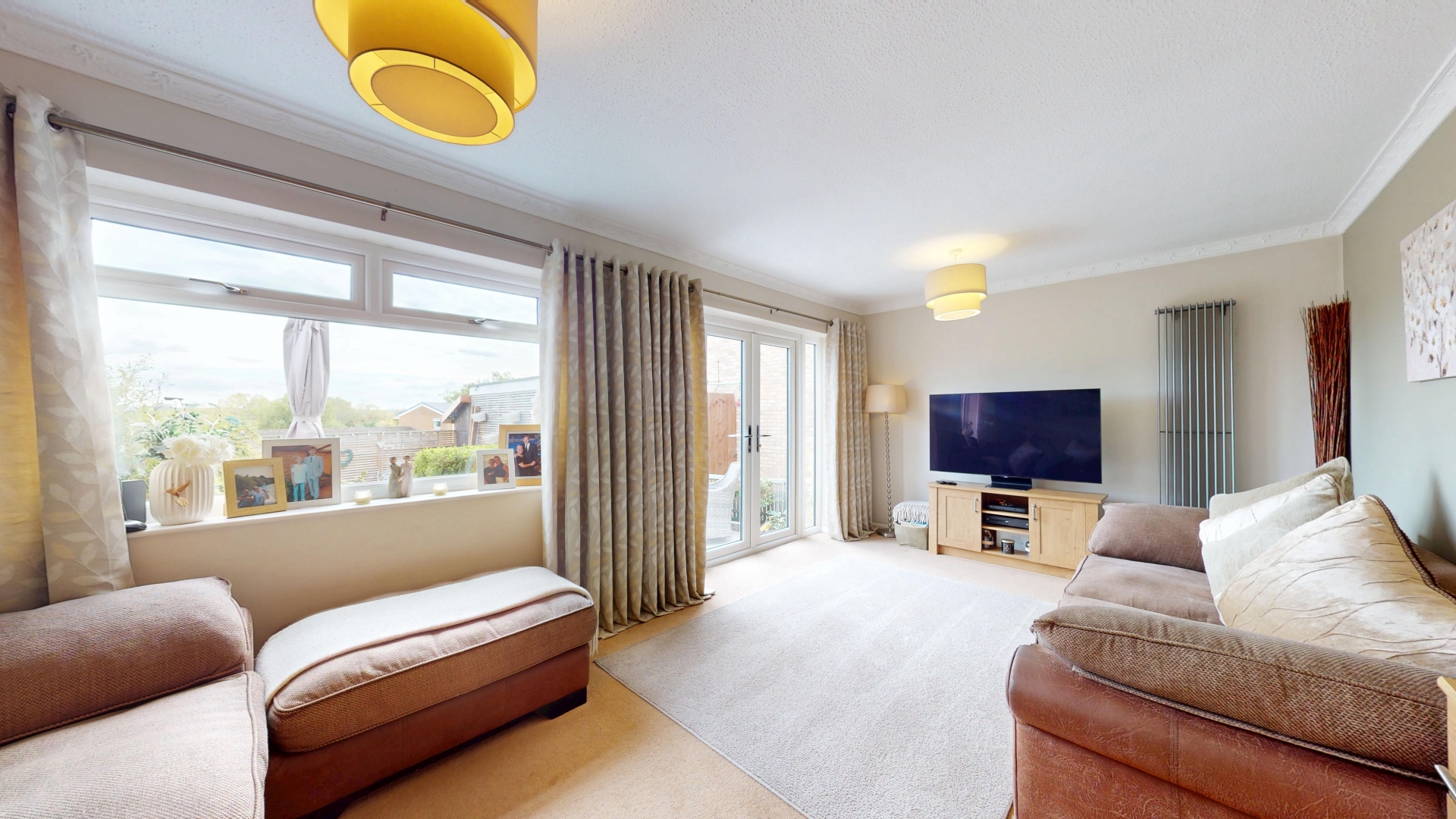 Double glazed window and French doors to rear elevation. Radiator. Vertical radiator. Coving. Television point.
