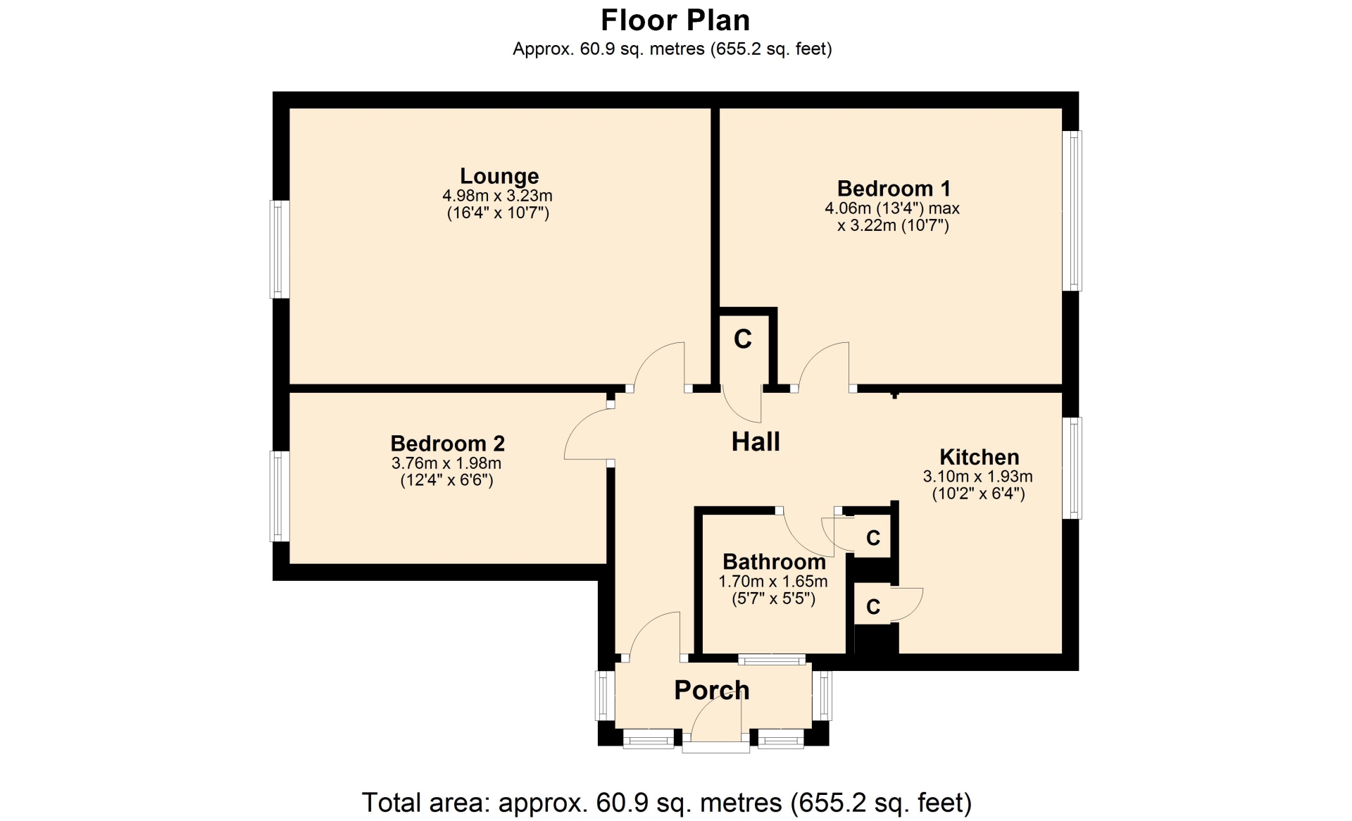 BEDROOM TWO 3.76m x 1.98m (12'4" x 6'5")