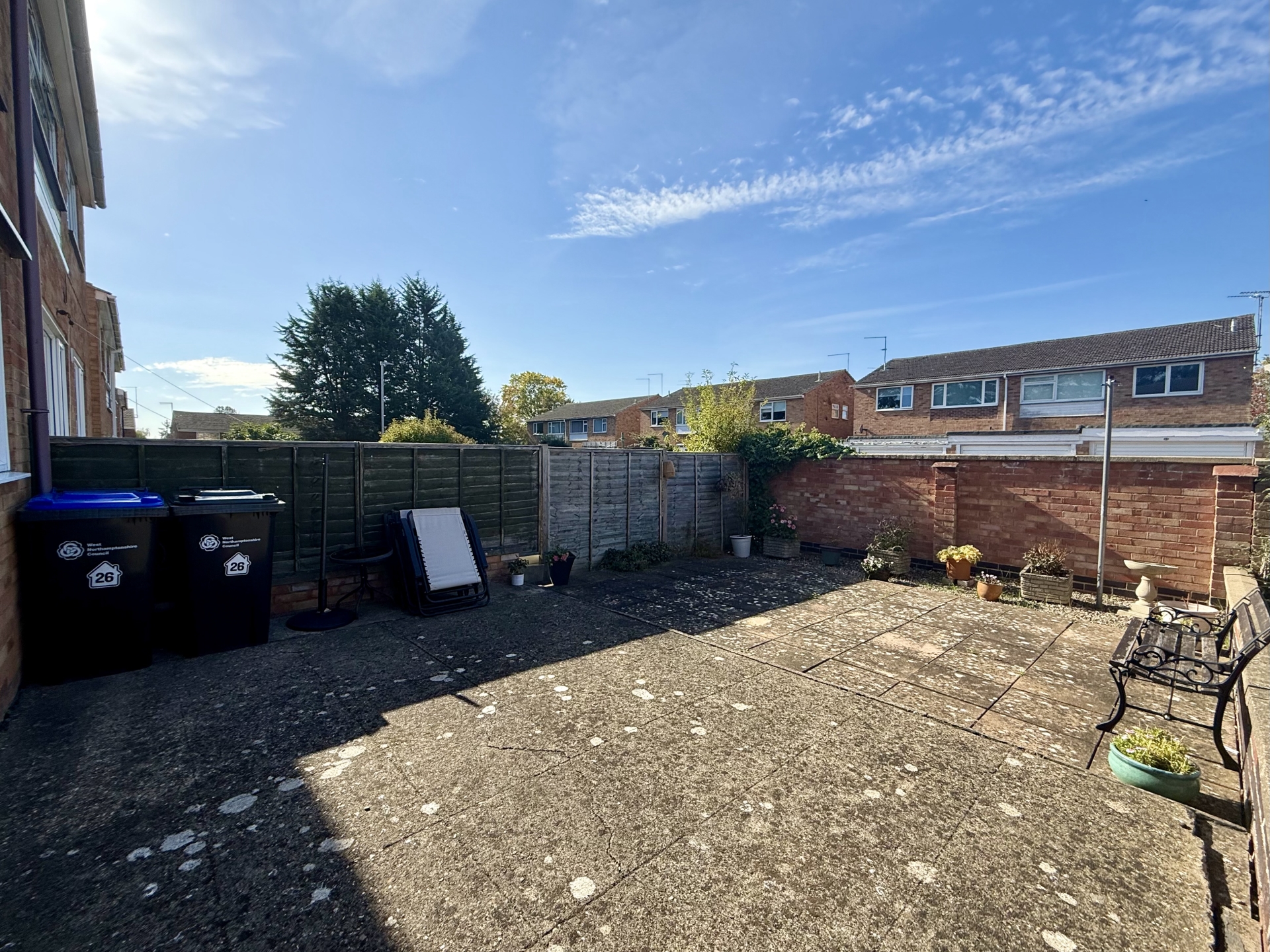 Largely paved rear garden with small graveled area. Enclosed by timber panel fencing and brick walls. Separate garage to the rear in block.