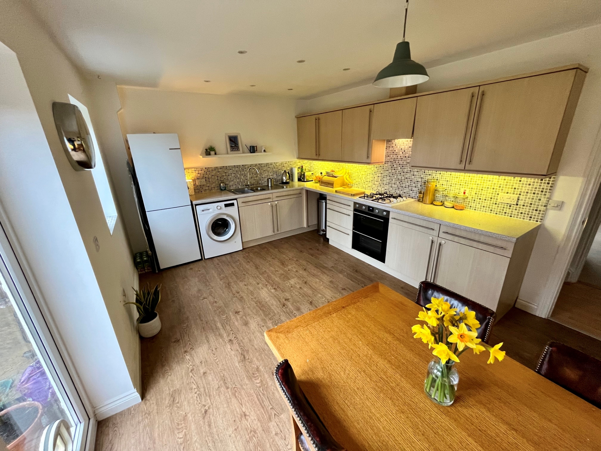 The property comprises entrance hall, a good size lounge, kitchen/dining room with French doors leading to the rear, and a ground floor WC. On the first floor, there are three bedrooms and a bathroom.