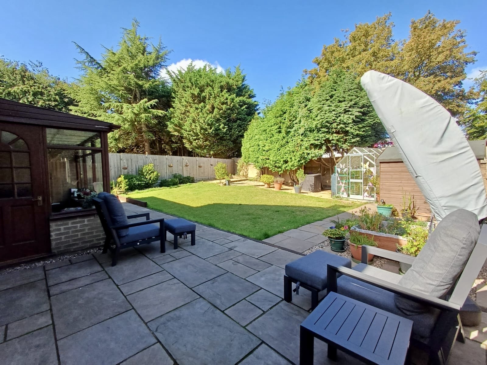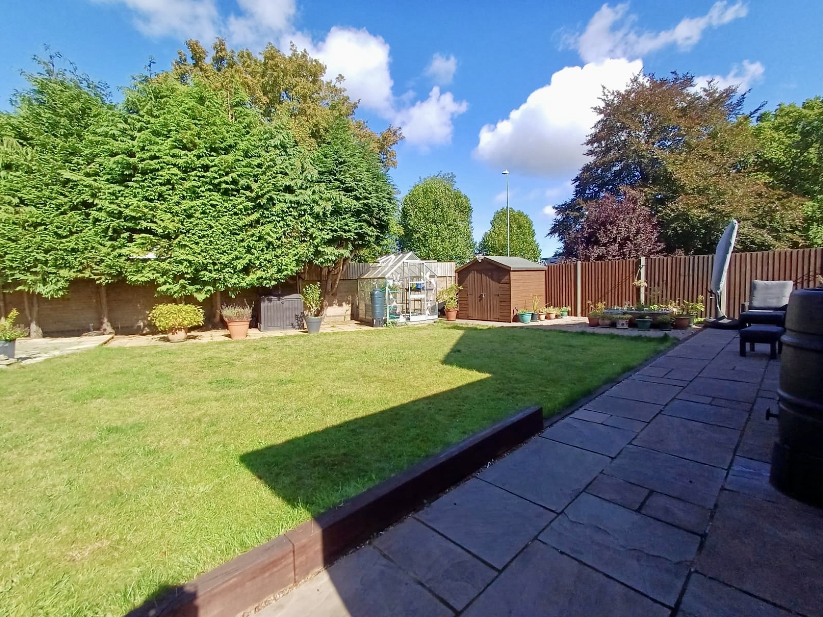 Fully enclosed with fencing. Extensive paved patio area. Laid to lawn. Pebbled beds and borders. Timber shed and including greenhouse.