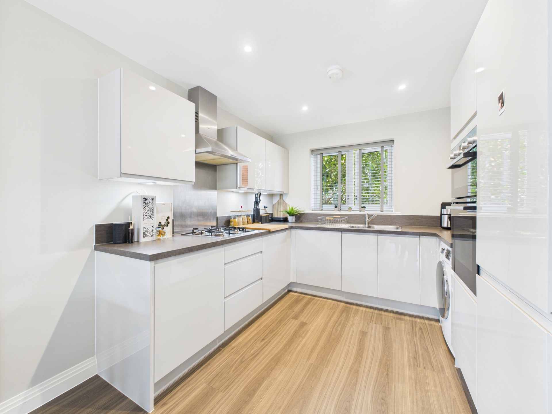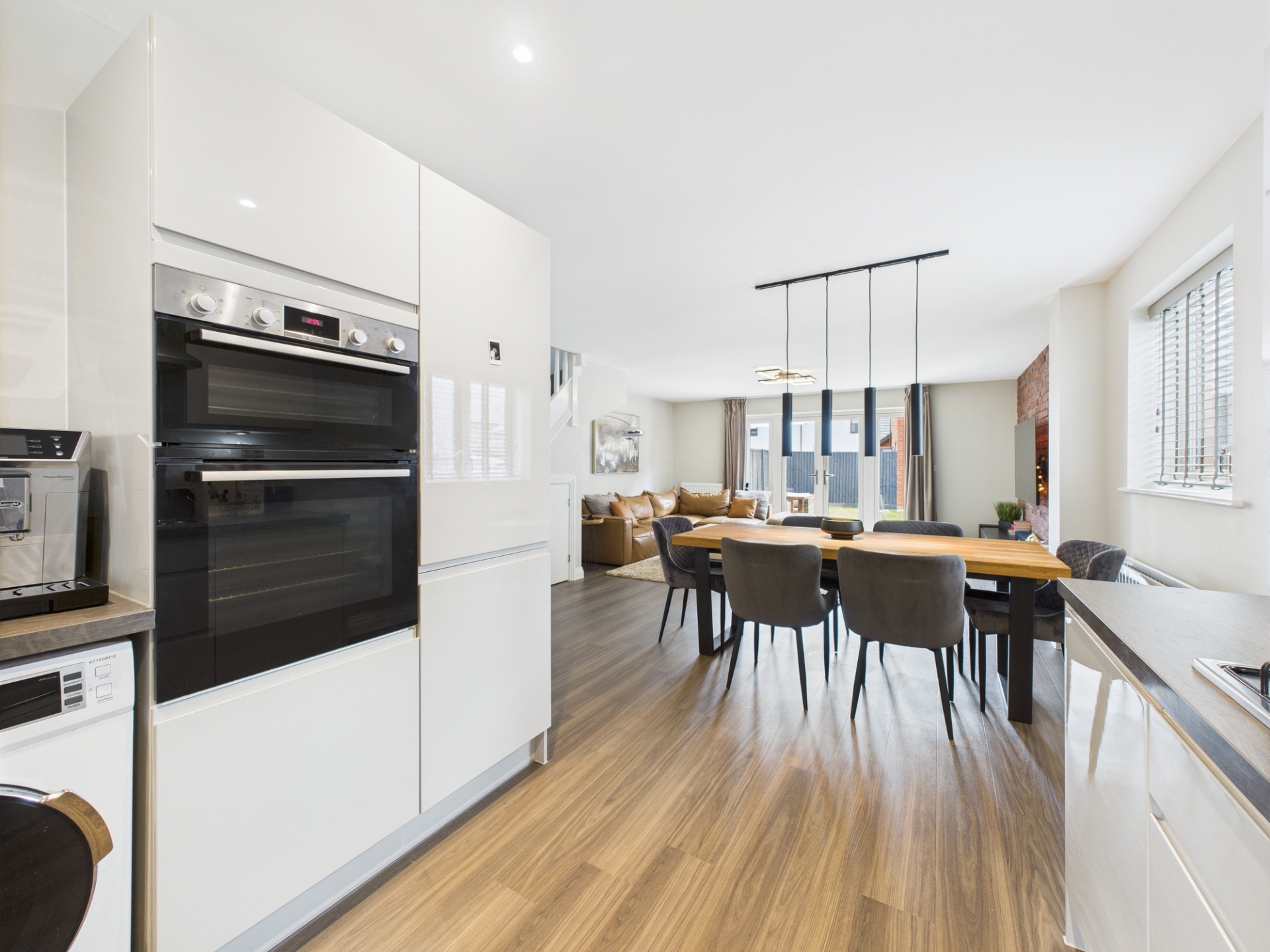 Lounge/Dining Area: Amtico flooring. Understairs storage. Stairs rising to first floor. uPVC double glazed window to side elevation. uPVC French doors to rear elevation. Two radiators.Kitchen Area: uPVC double glazed window to front elevation. A range of base and wall units. Stainless steel sink and drainer. Integrated fridge freezer, dishwasher, high level double oven, gas hob and extractor hob. Space for washing machine. Square top work surfaces.