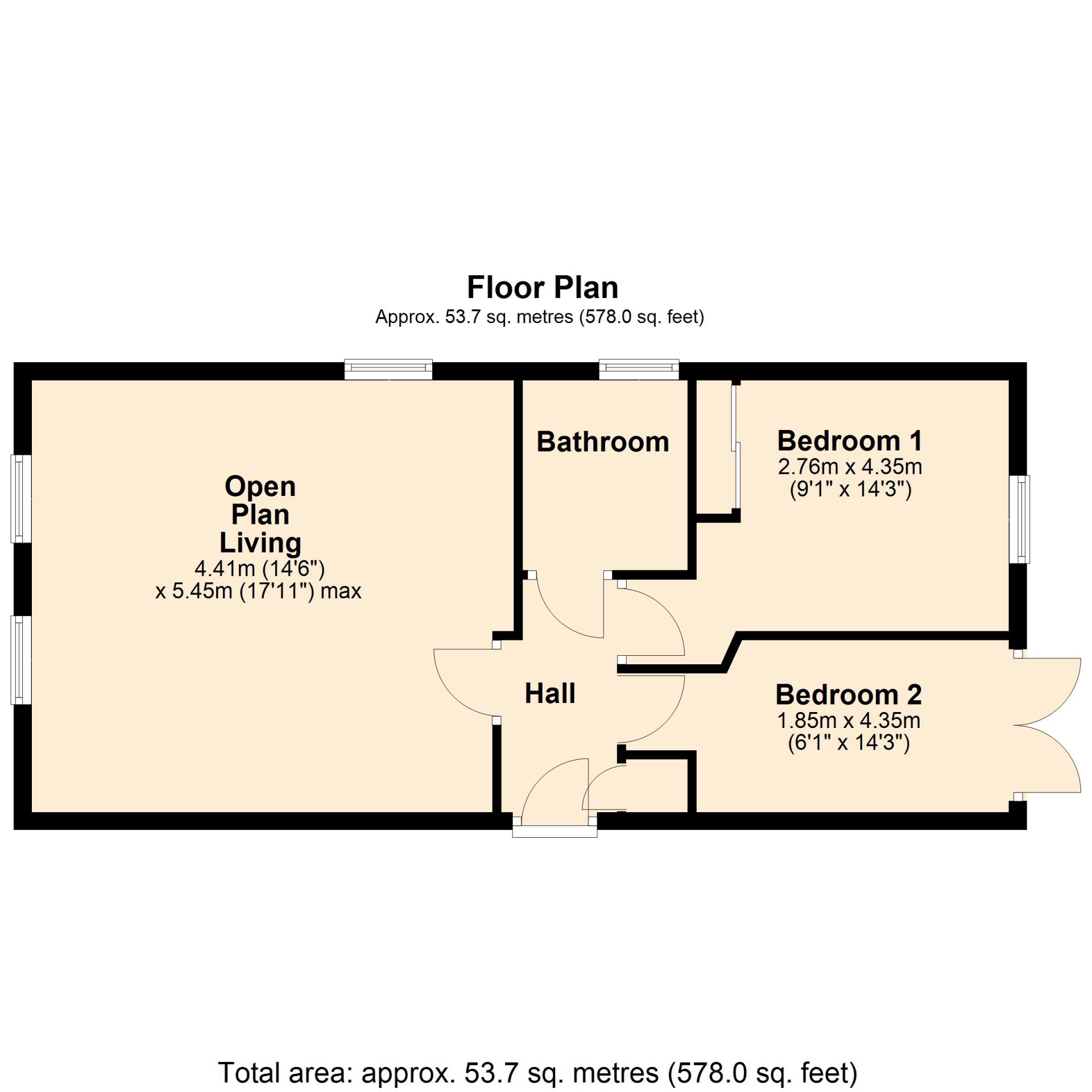 BEDROOM TWO 1.85m x 4.35m (6' x 14'3")