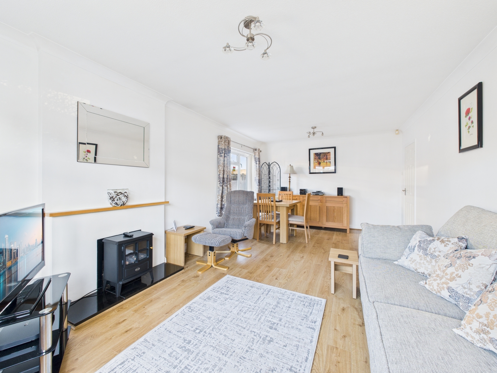 Outside, the property benefits from a private, enclosed rear garden, mainly laid to lawn with mature, well stocked borders, as well as access to the garage and shed. The front garden is equally well maintained and provides driveway parking for two to three vehicles.