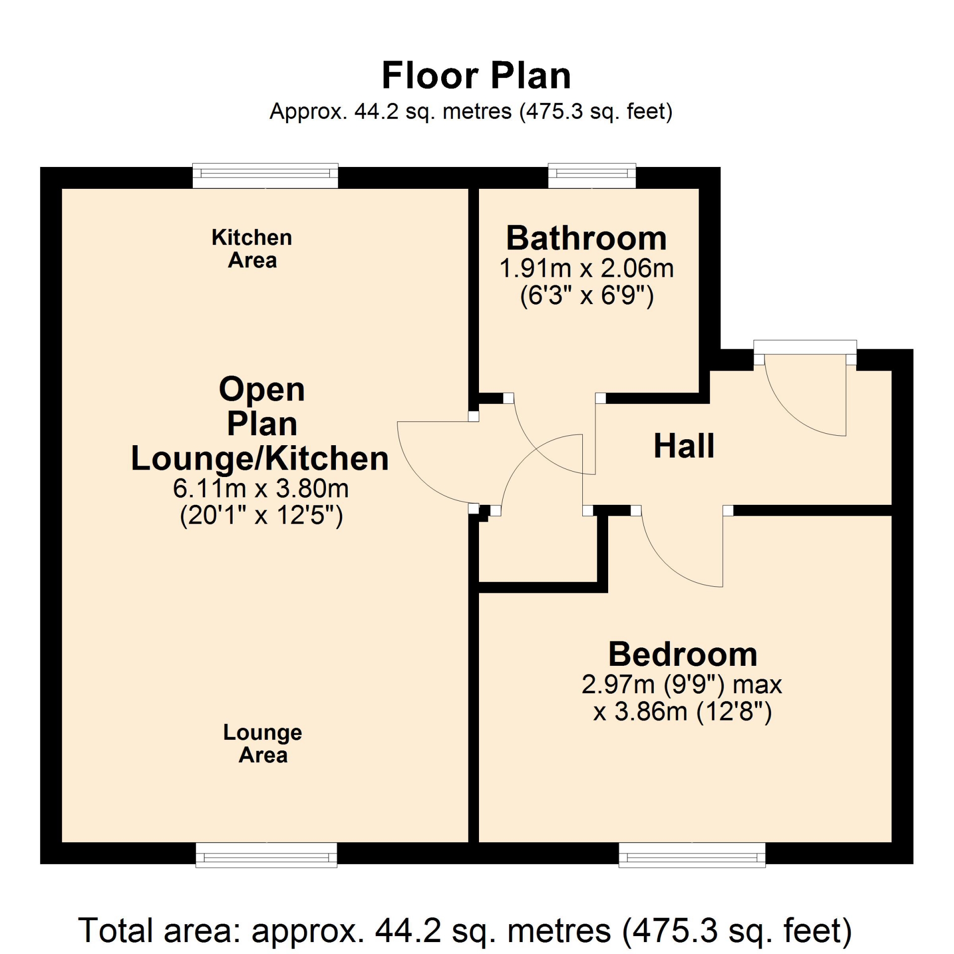 Entrance via wooden door. Access bedroom, lounge/kitchen, bathroom and storage cupboard.