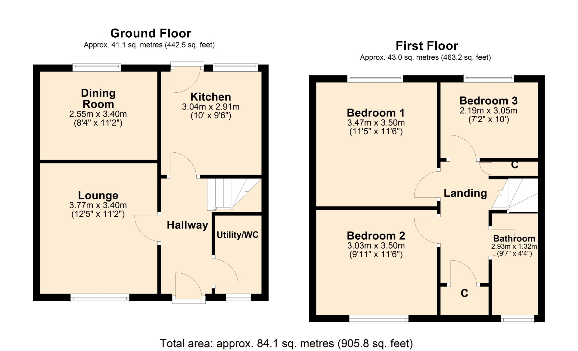 DINING ROOM 2.55m x 3.40m (8'4" x 11'2")