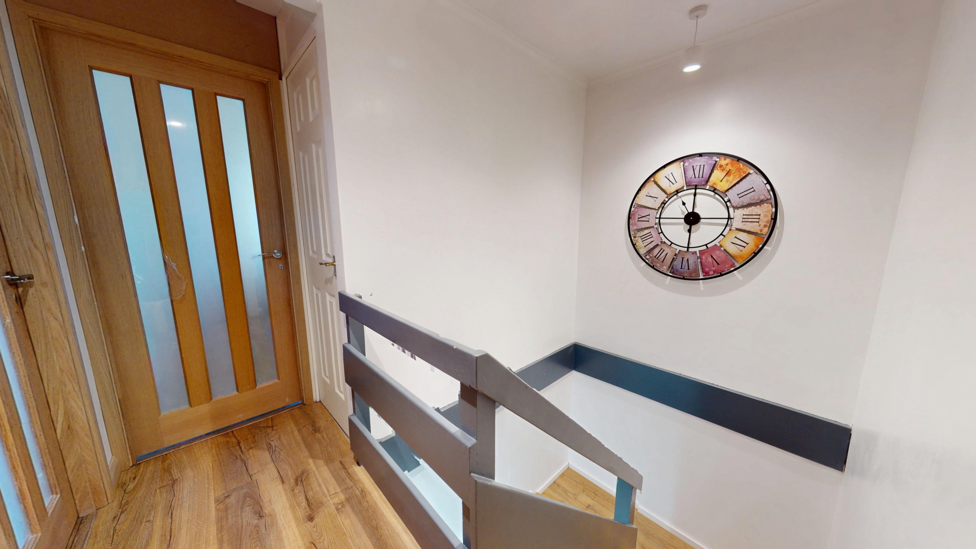 Loft hatch. Storage cupboards. Doors to bedrooms and bathroom.