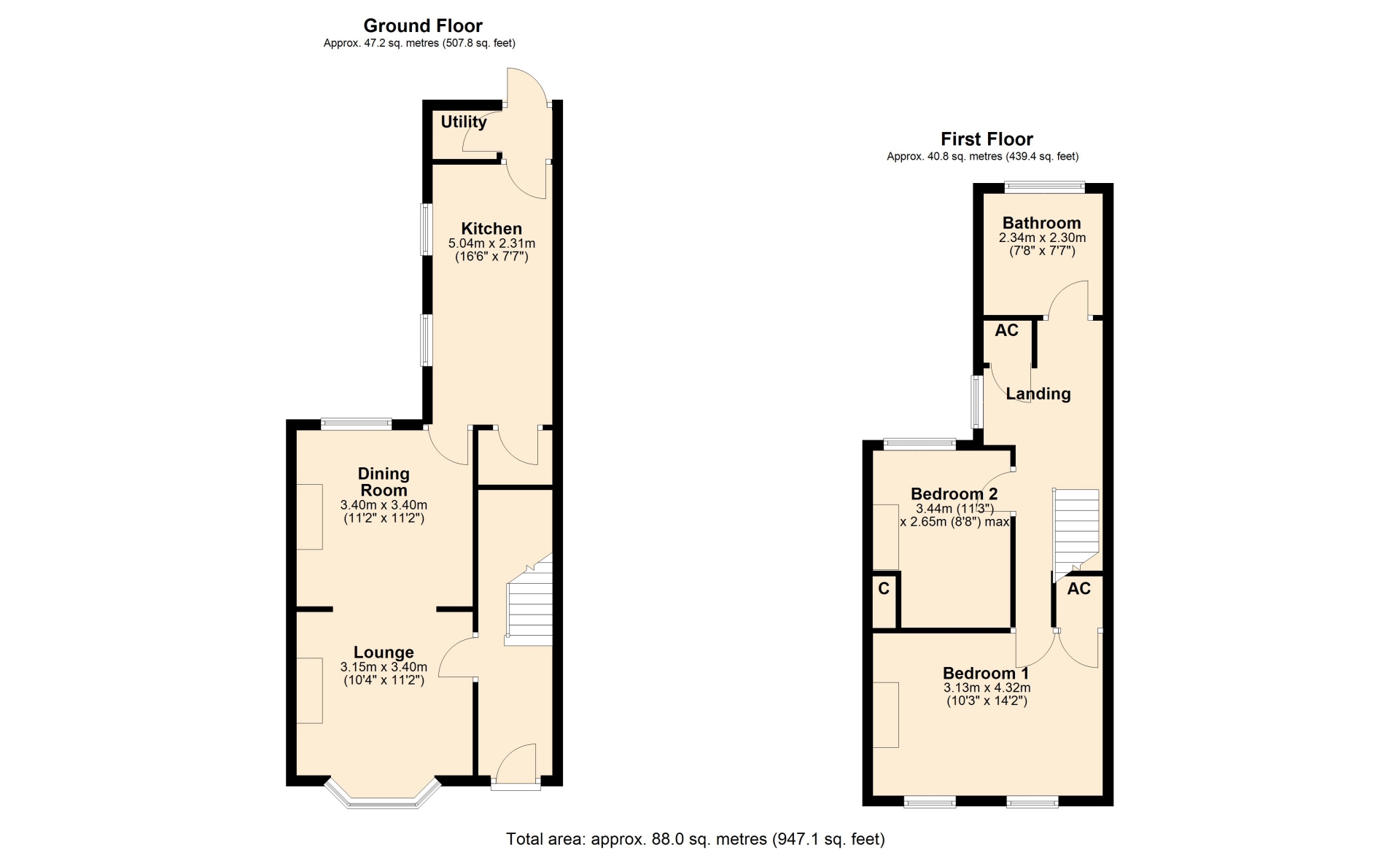 BEDROOM TWO 3.44m x 2.65m (11'3" x 8'8")