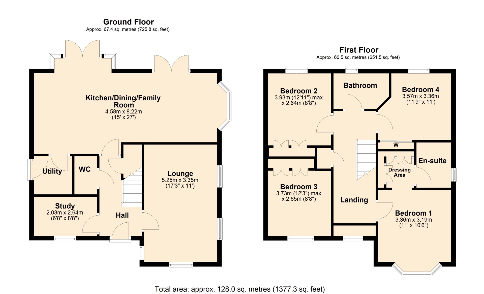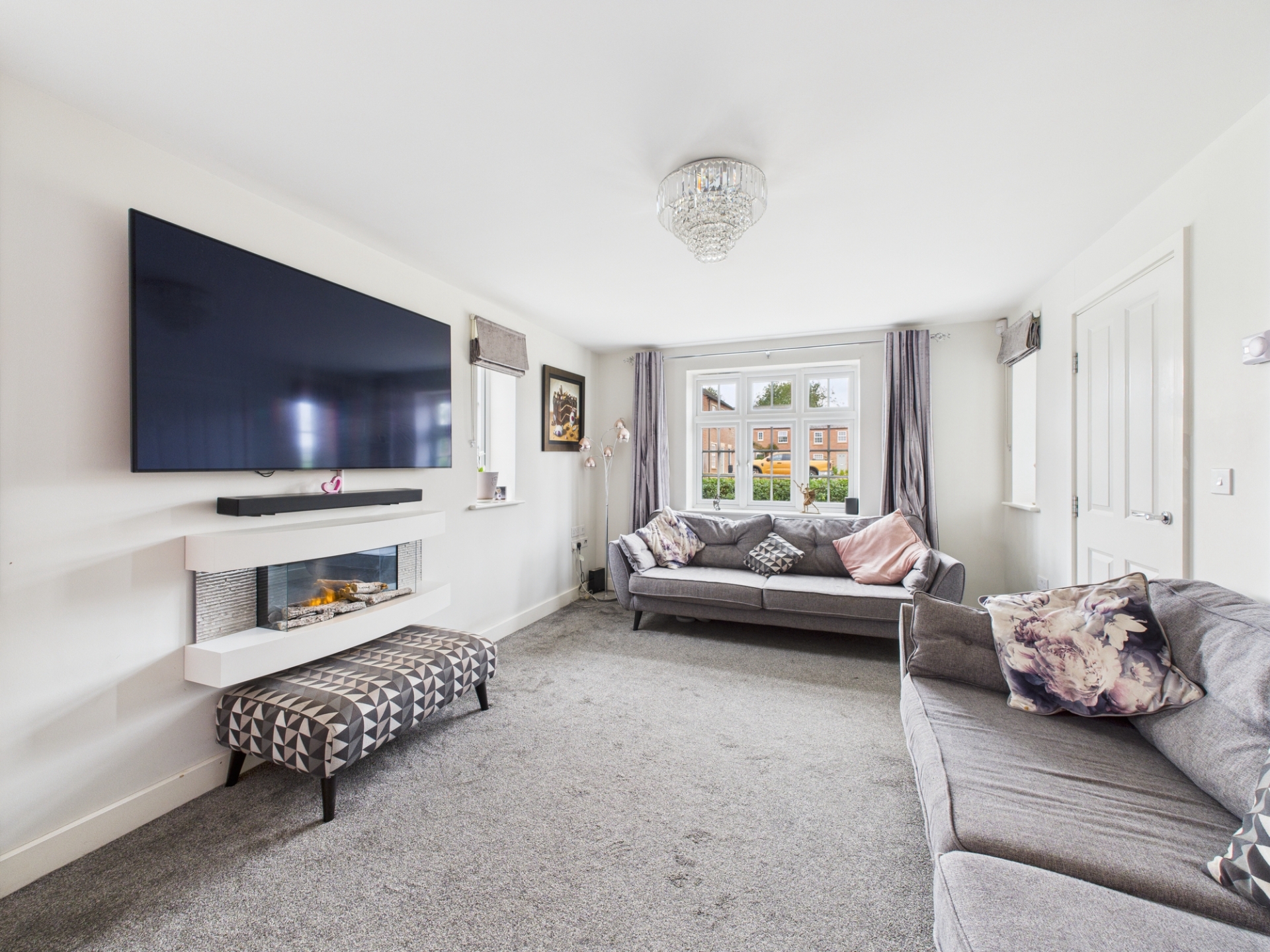 A very well presented four bedroom detached property situated on a corner plot opposite a green space. It has a hall, WC, lounge, study, 27 ft kitchen/dining/living room, utility room, galleried landing, bedroom one with built in wardrobes, dressing area and en-suite shower room. There are three further bedrooms all with built in wardrobes and the main bathroom has a separate shower and bath. Outside, there is parking for three vehicles, a garage and attractive garden with a covered bar and seating area. The property has uPVC double glazing and radiator heating. EPC Rating: B. Council Tax Band: F.
