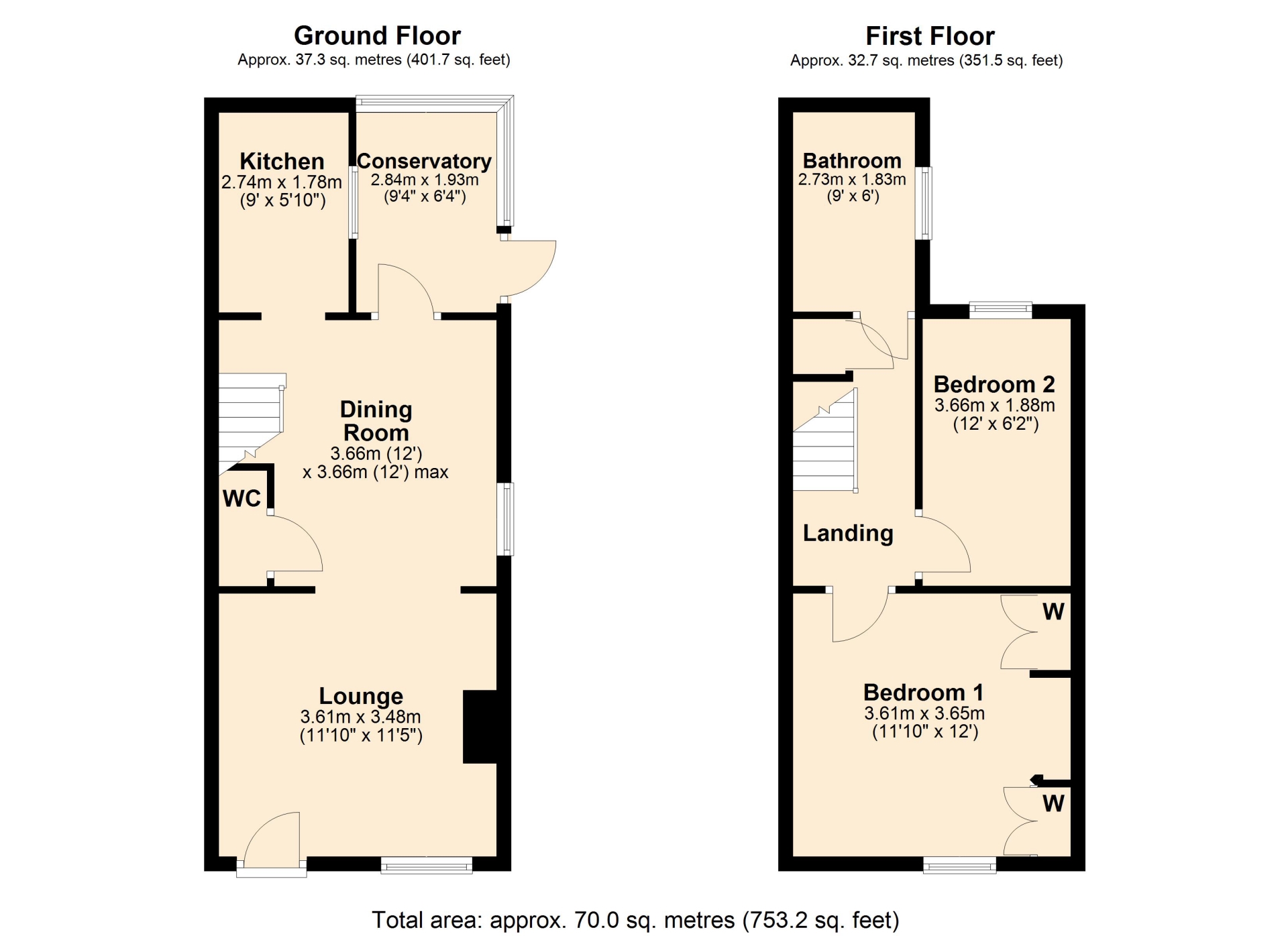BEDROOM TWO 3.66m x 1.88m (12' x 6'2")