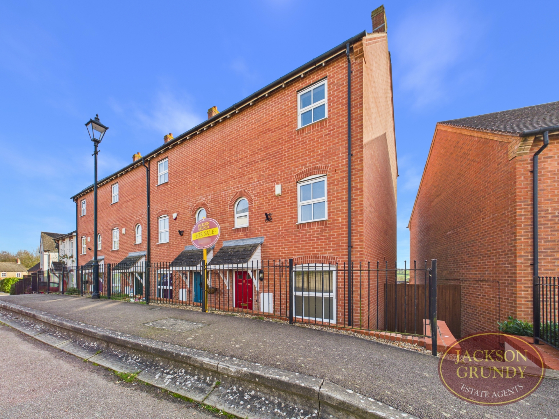 A modern town house property located in the highly desirable village of Braunston. The accommodation comprises entrance hall, study/playroom, downstairs WC/utility room, living room with French doors leading to the rear garden. First floor accommodation comprises fitted kitchen with dining room, further cloakroom and third bedroom. The top floor comprises two further bedrooms both containing built in wardrobes, en-suite to main bedroom and a family bathroom. Outside is an enclosed rear garden and allocated parking. EPC Rating: E. Council Tax Band: C