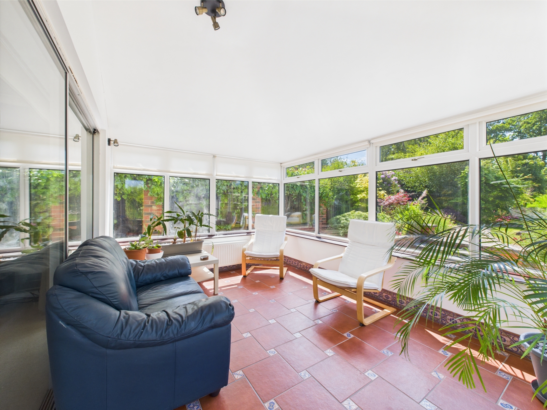 From the entrance hall you have access to the study / bedroom four, bedroom one with fireplace and fitted wardrobes, third bedroom, shower room and kitchen / dining room. The kitchen has been modernised to a high standard with quality Miele and Siemens appliances, quartz work tops, tiled floor and views onto the garden through the windows and patio doors. Off the kitchen is the second bedroom with en-suite shower room and the large sitting room beyond which is the garden room all with views of the garden.