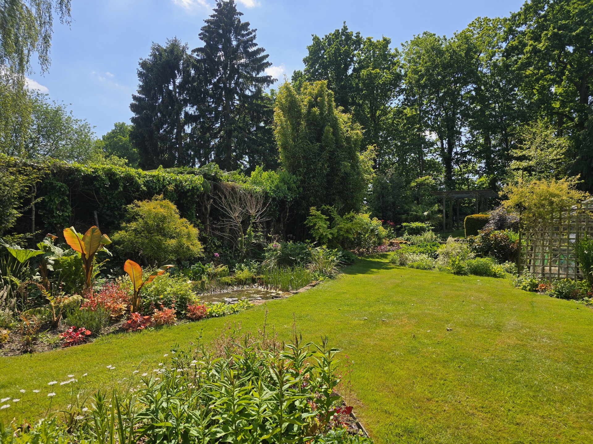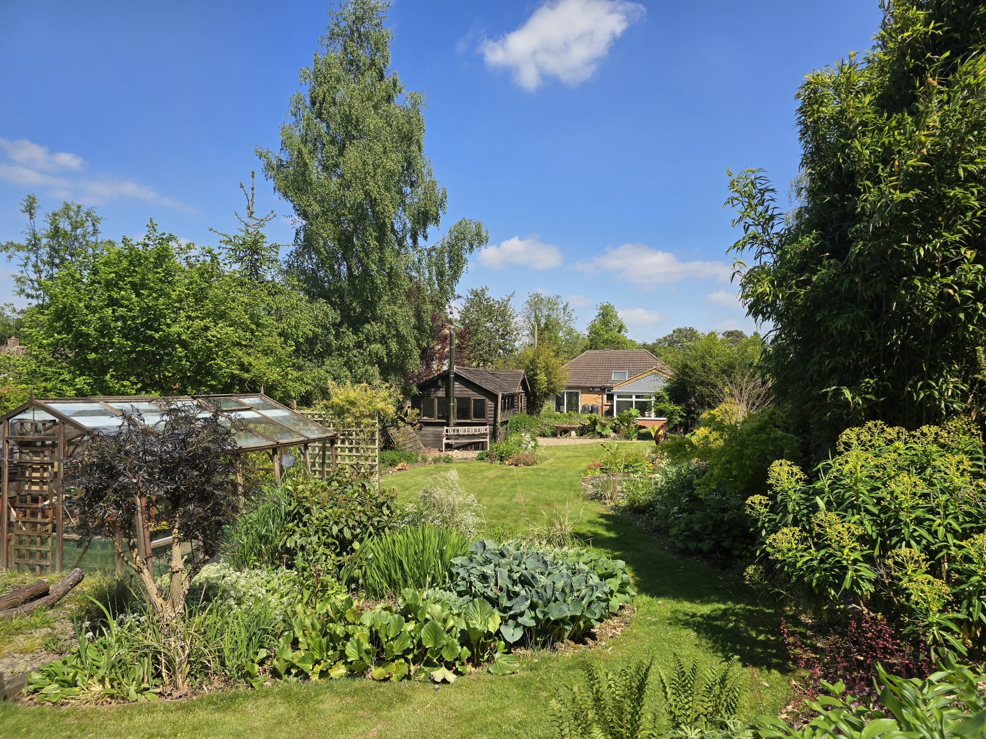 When entering the private westerly facing garden your eyes encourage you to explore right to the very end with its meandering lawned path with is hugged either side by established bedded borders housing a variety of exotic and interesting plants. At the end of the garden is a pergola and second lawned area, when reaching this point you will have passed a large patio, two ponds and a 19'8 x 9'7 summerhouse with wood burning stove, power and water connected.
