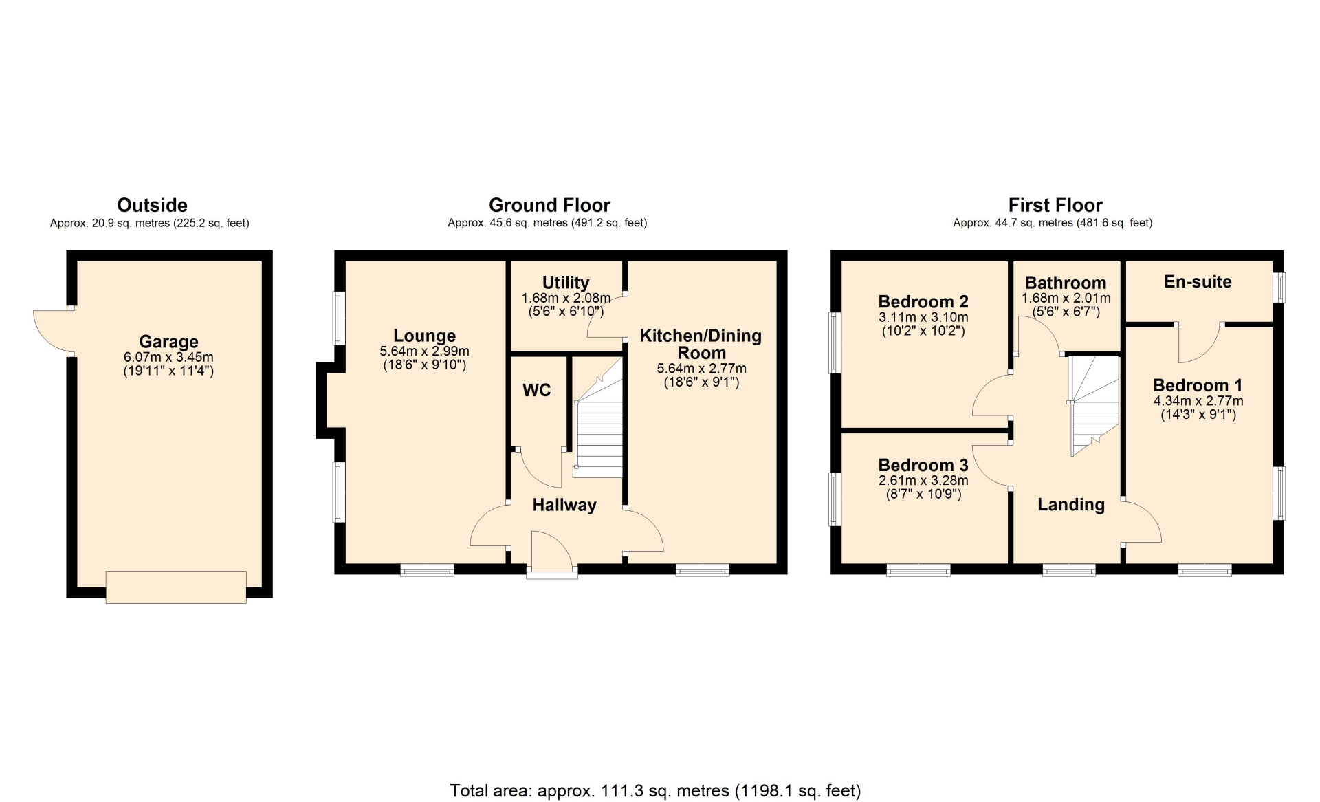 This spacious property boasts well-proportioned rooms, a private, enclosed garden, and a practical layout that combines both style and comfort. Upon entering, you are greeted by a generous entrance hall which leads to a light-filled and inviting living room, featuring dual-aspect windows that flood the space with natural light. The heart of the home is the modern, fully-fitted kitchen, complete with integrated appliances and spacious dining area, with French doors opening to the south facing rear garden. A separate utility room and a convenient downstairs cloakroom complete the ground floor. Upstairs, the first-floor landing leads to three spacious and well-lit bedrooms. The main bedroom offering a peaceful retreat with dual-aspect windows and the added luxury of an en-suite bathroom. The remaining bedrooms are equally well-sized and share a family bathroom, finished to a high standard. The rear garden is south-facing and enclosed by wall and fencing providing both privacy and a sunny spot for outdoor entertaining or relaxation. There’s direct access to the garage ad gated access to the front. The driveway offers off-road parking for two cars. Further benefits include gas-fired central heating, double glazing throughout, and an EPC:B. Council Tax Band: D.