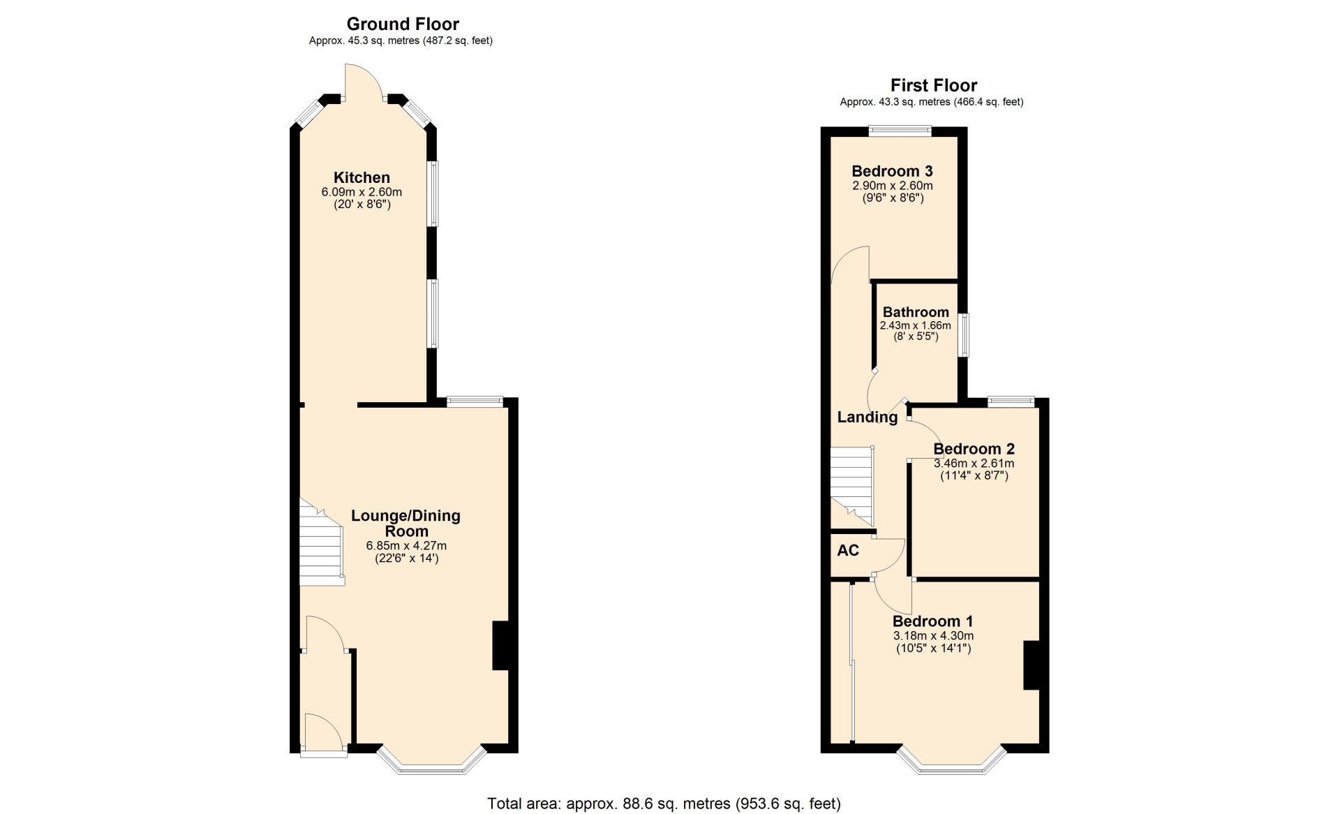 BEDROOM ONE 3.18m x 4.30m (10'5" x 14'1")