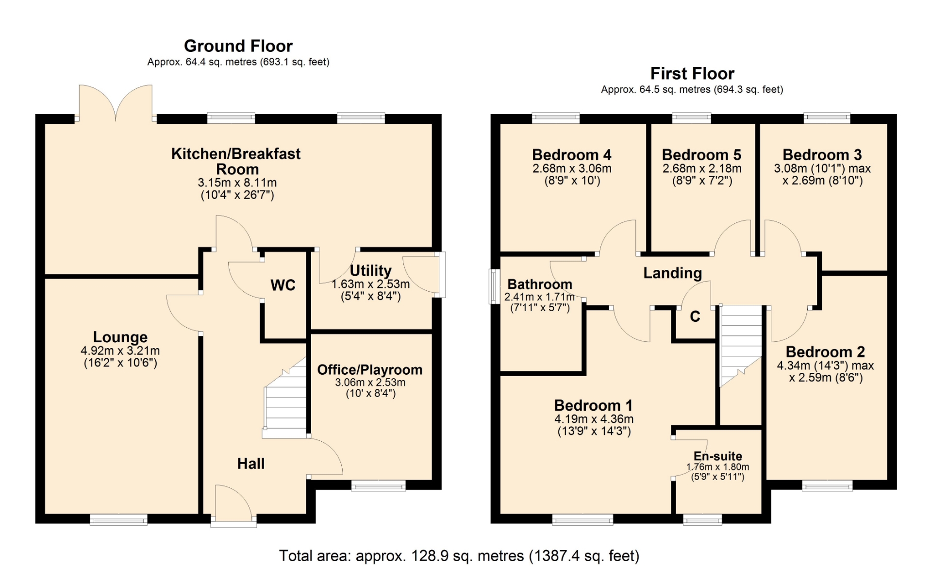 The ground floor accommodation comprises entrance hall, cloakroom, office/playroom, lounge, kitchen living and dining room and utility.