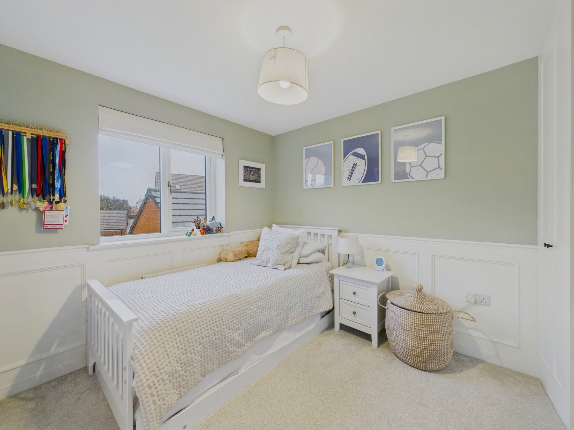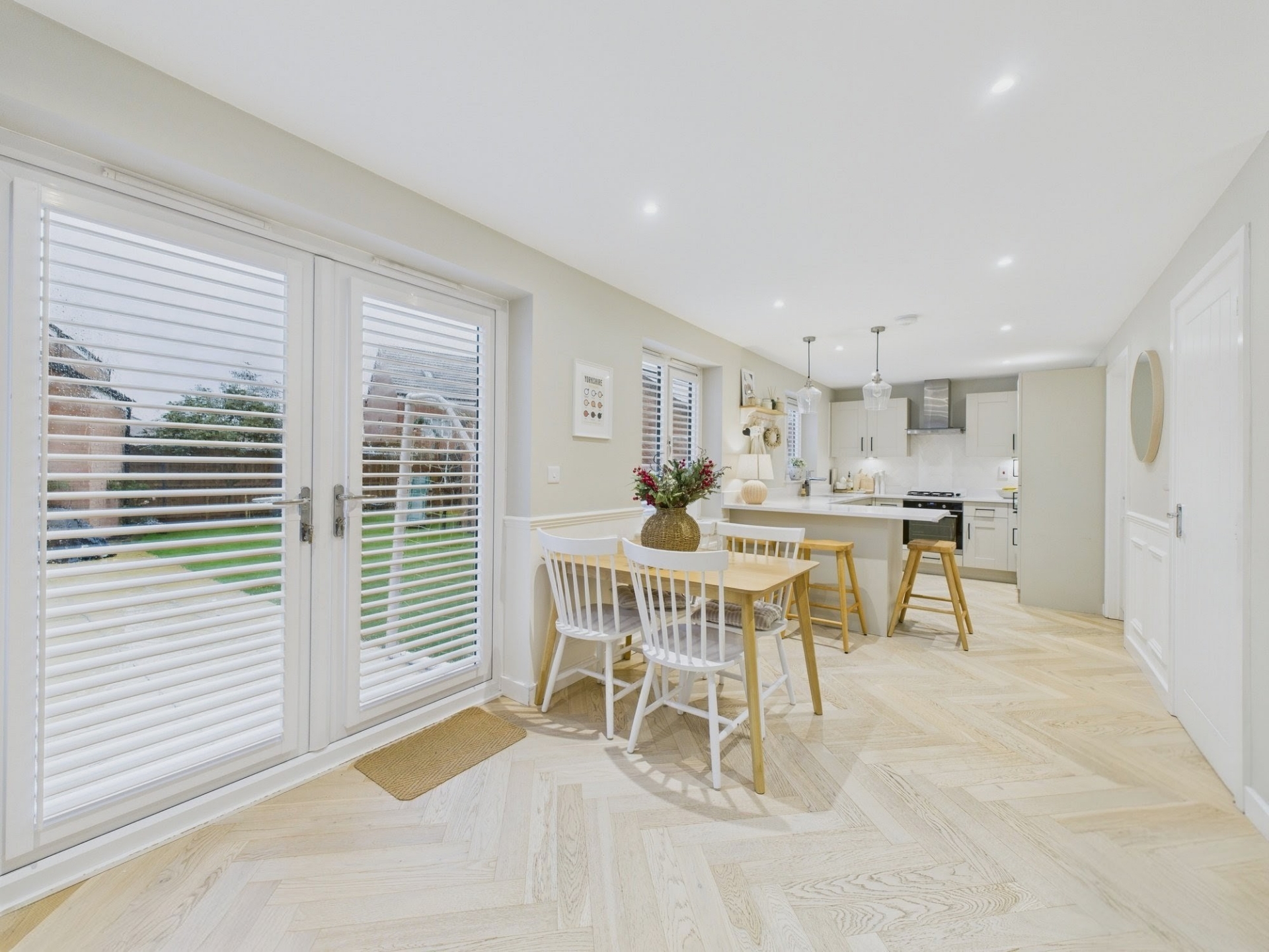 A stunning example of a highly upgraded five bedroom detached family home constructed in 2022. Benefitting from bespoke storage throughout, professionally installed decorative panelling, fully landscaped front and rear gardens and solid oak herringbone flooring to the ground floor. This property has been thoughtfully styled throughout to create a beautiful home.