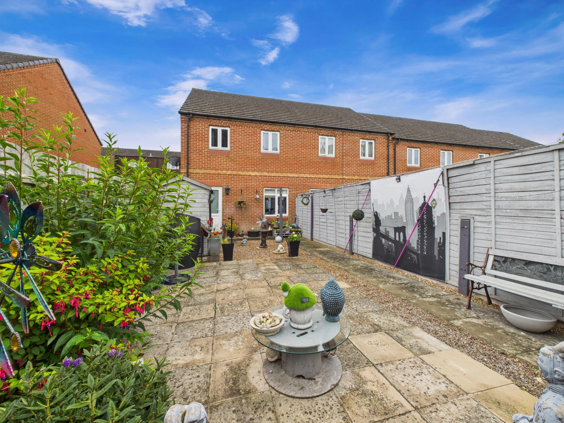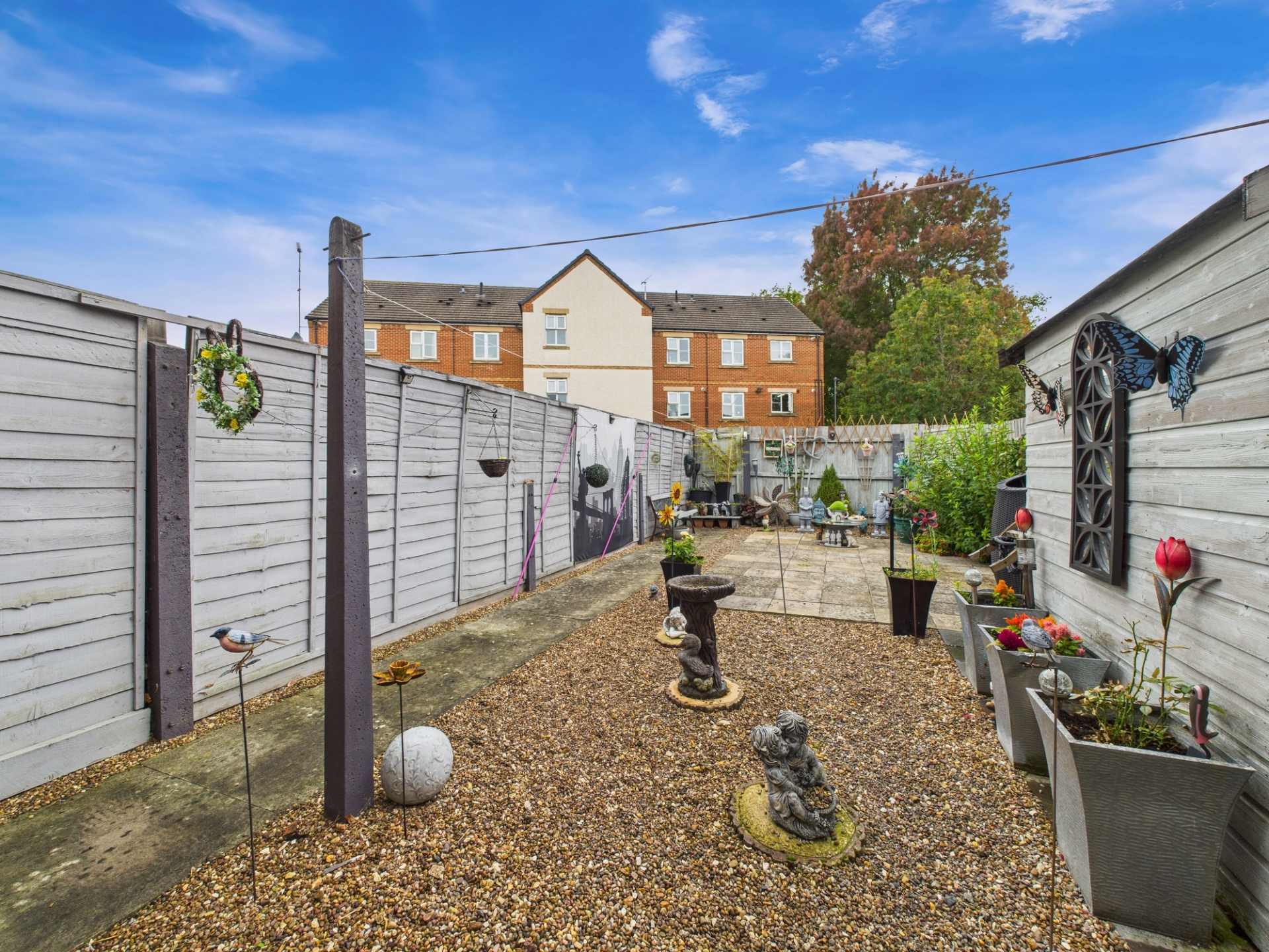 Mainly paved. Rear gate. Shed. Fenced borders.