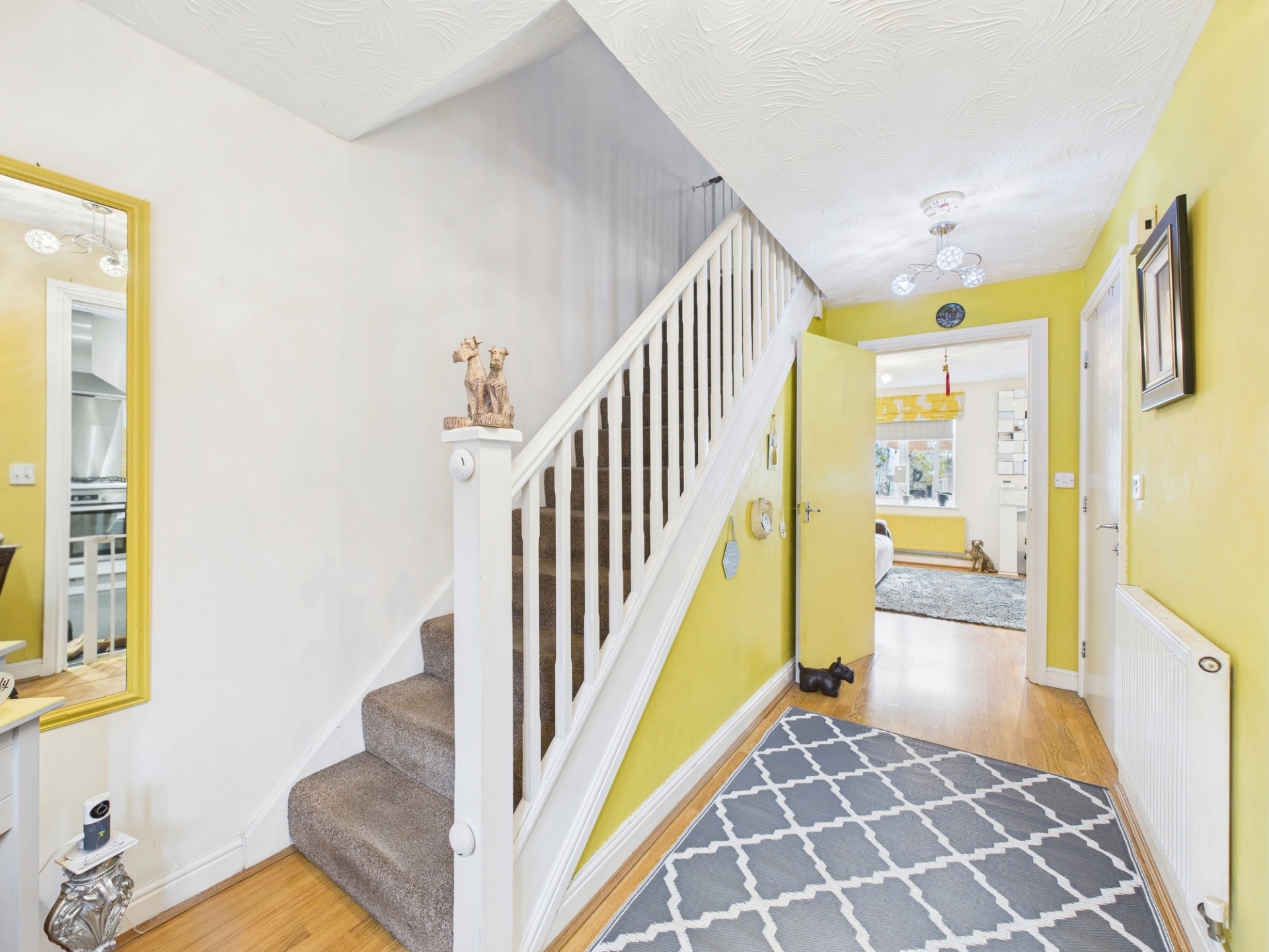 uPVC entrance door. Radiator. Staircase rising to first floor landing. Door to: