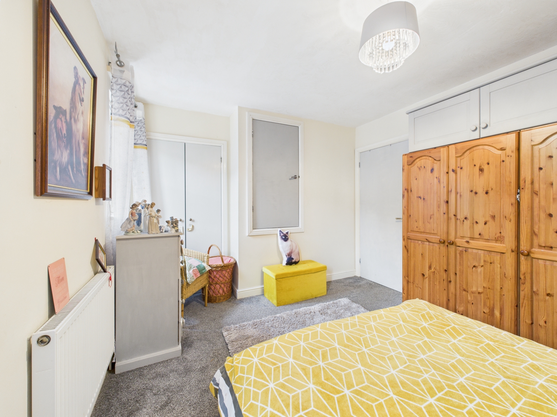Radiator. Storage cupboard. Doors to: