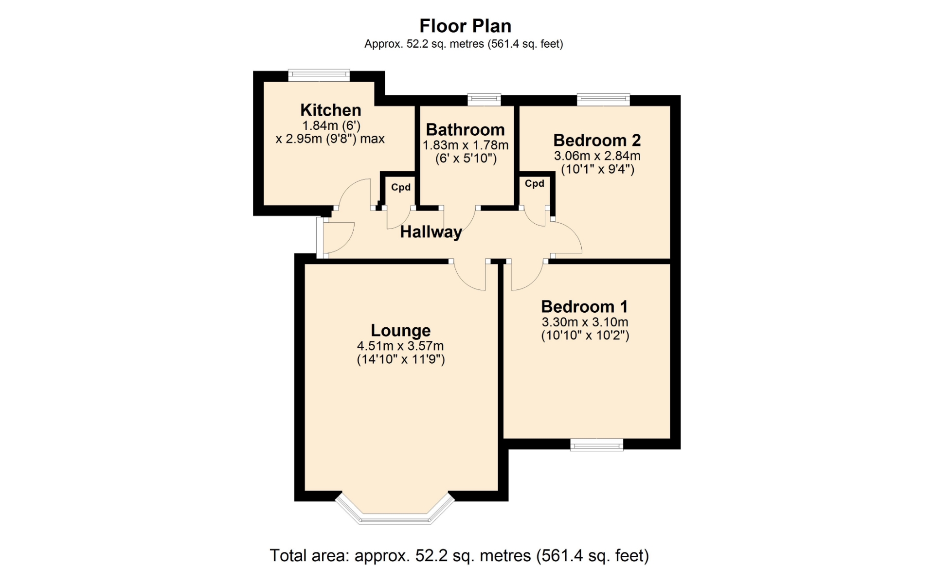 Entrance to the apartment is via a secure entry system. Upon entering the hallway gives access to all rooms, a spacious open-plan lounge with a large bay window, providing an abundance of natural light and offering a superb outlook of the surrounding area. The kitchen is well-appointed with modern appliances, plenty of counter space, and fitted cabinetry, making it perfect for cooking and entertaining. There are two generously sized bedrooms, with the main bedroom benefiting from dual aspect windows. The family bathroom is stylishly designed with contemporary fixtures, including a bathtub with a shower overhead, a vanity unit, and modern tiling throughout.