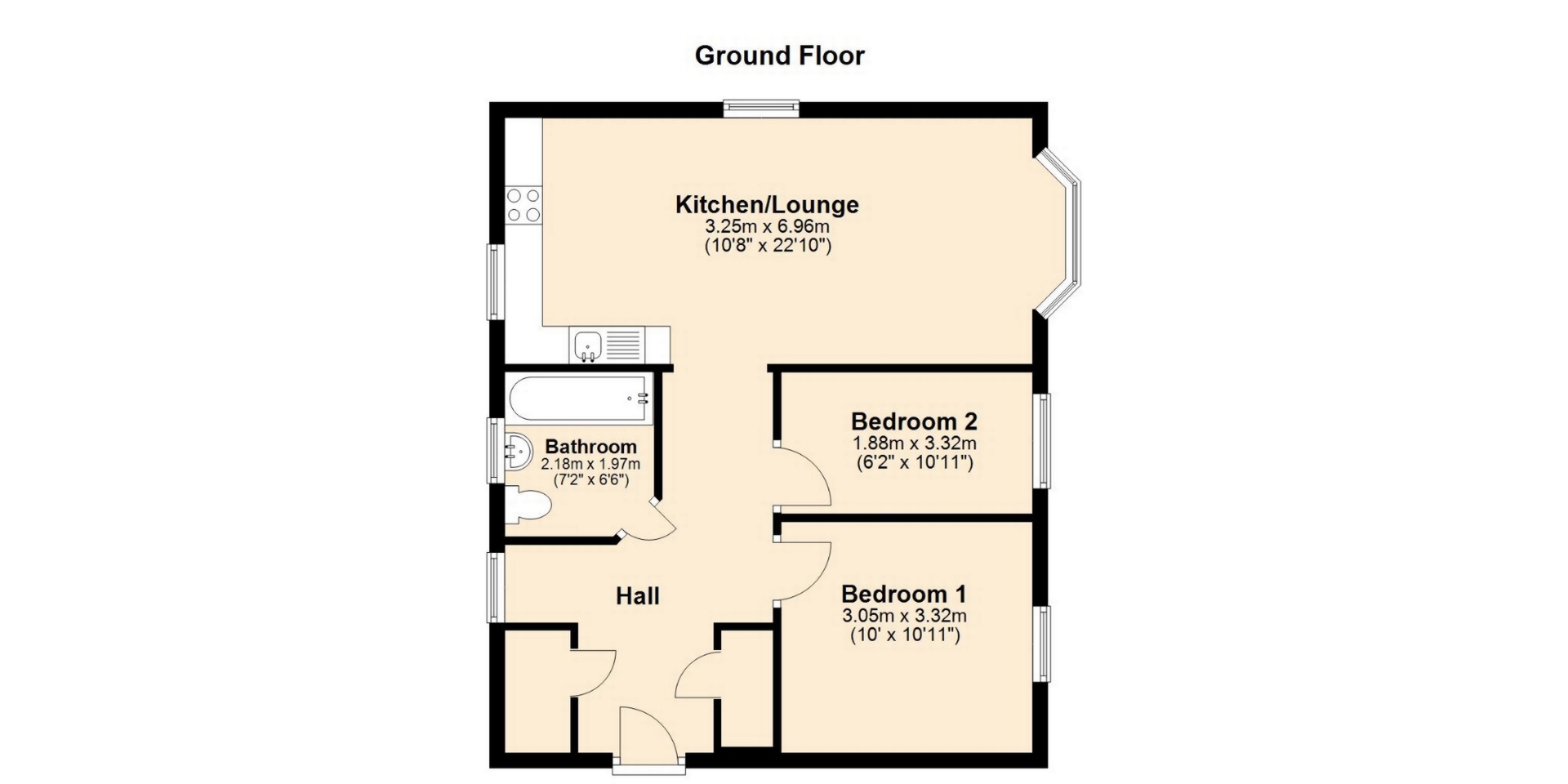 BEDROOM TWO 1.88m x 3.32m (6’2 x 10’11)